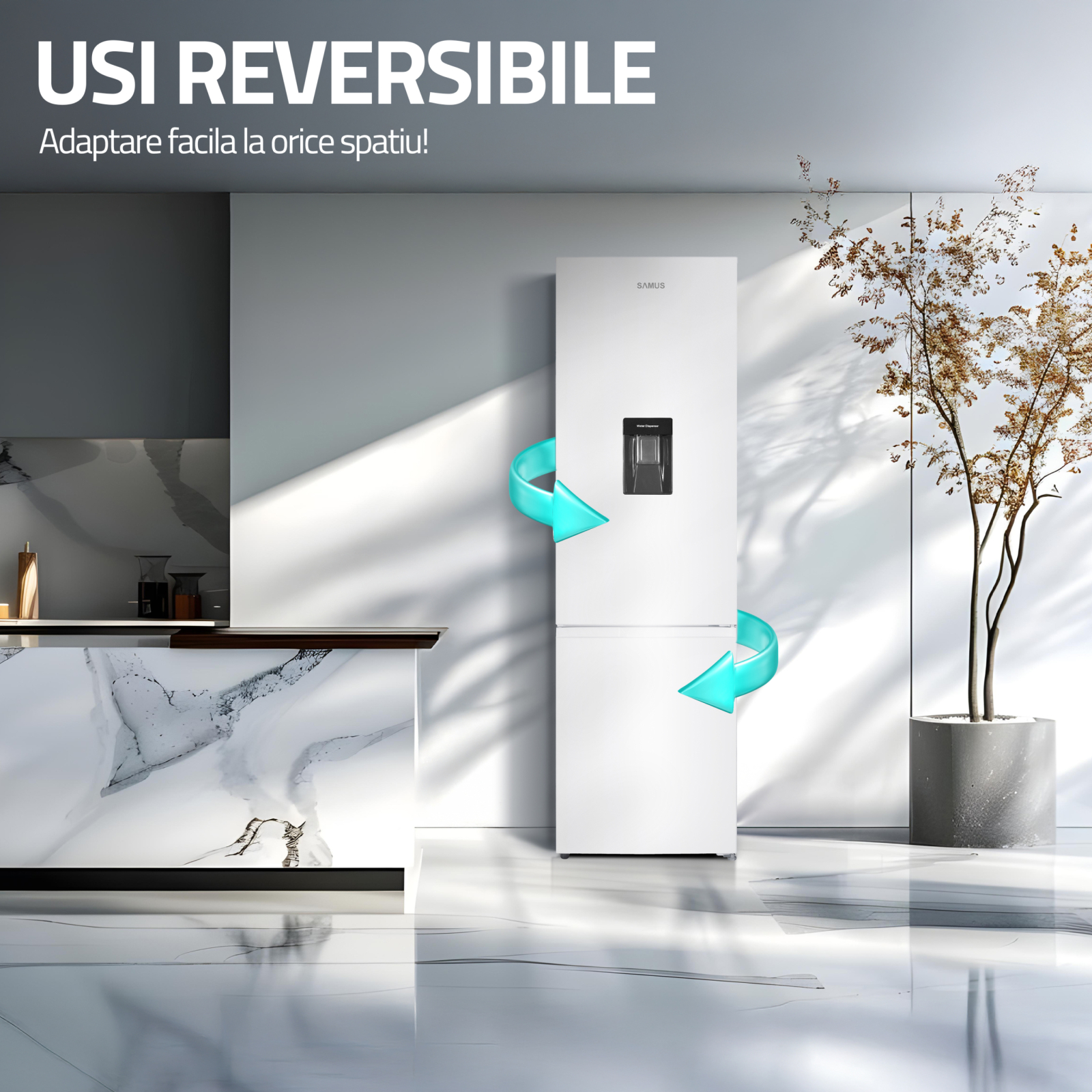 Combina frigorifica Samus SCW506NFDE, 324 L, Full No Frost, Dozator apă, Control electronic LED, Clasa E, Alb