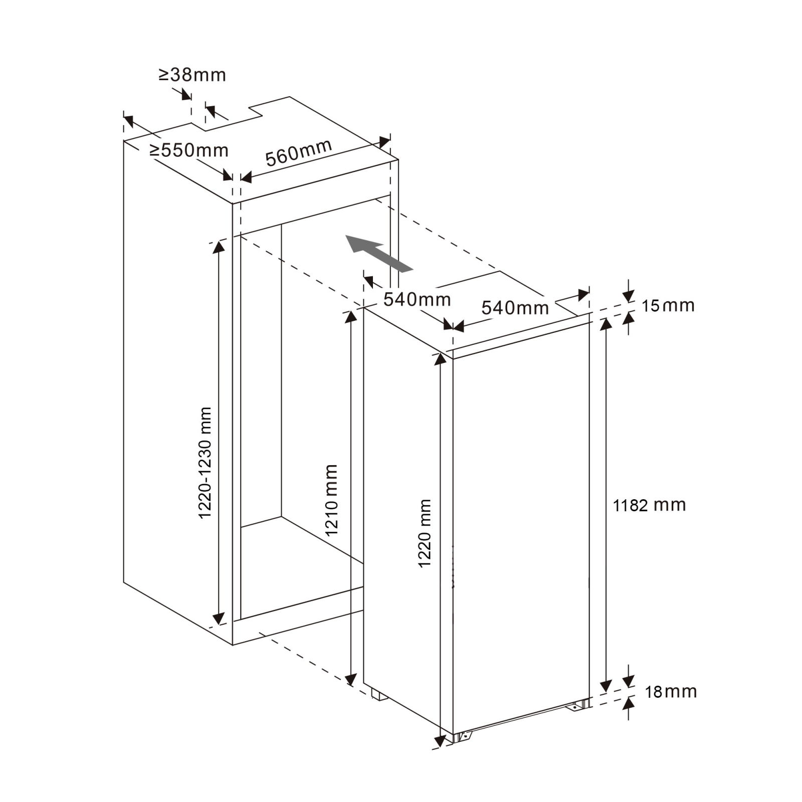 Frigiderul incorporabil Samus este incadrat in clasa energetica F. Consumul anual al acestei combine este de 182 kWh/an.