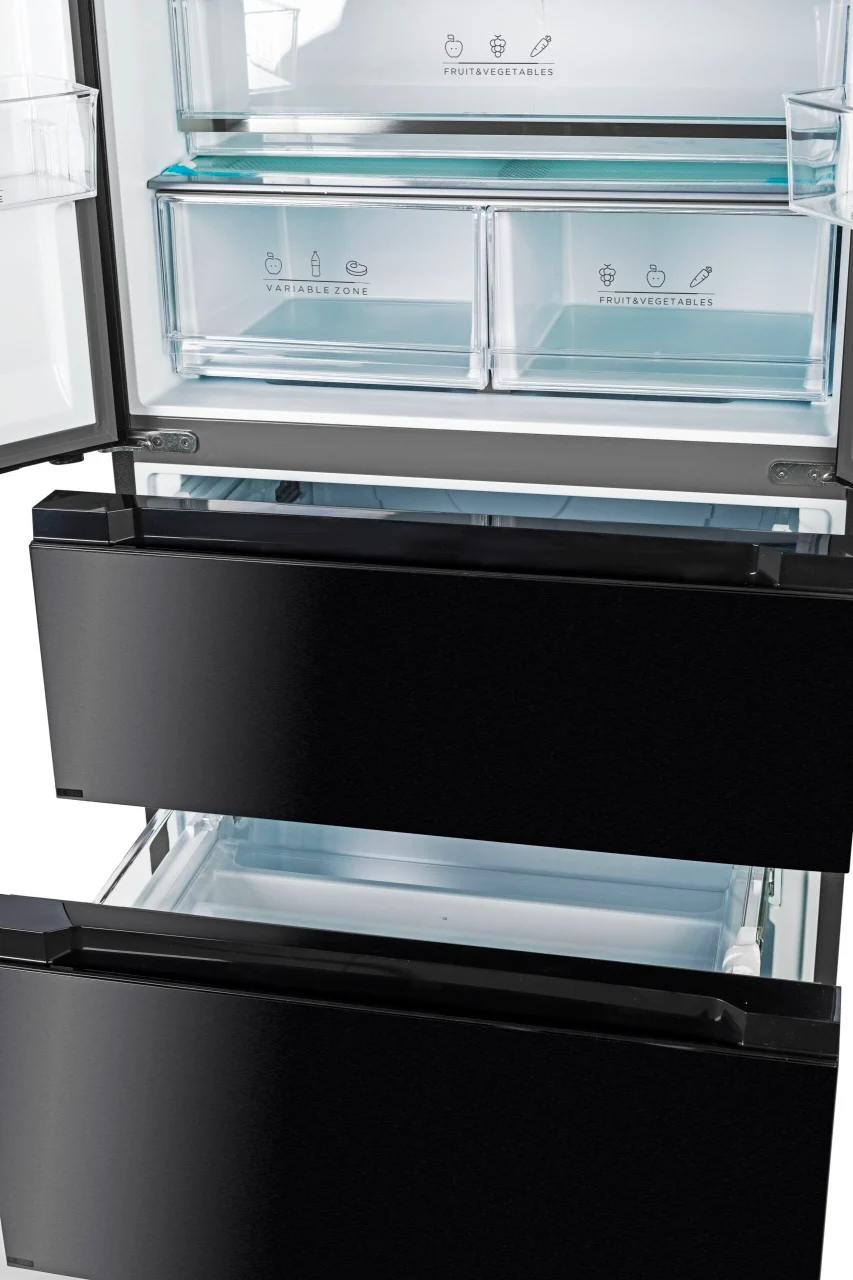 Tehnologia NO FROST și controlul digital oferă întreținere simplă, fără a fi necesară dezghețarea frigiderului și a congelatorului, iar aerul uscat din interiorul frigiderului prelungește foarte mult durata de valabilitate a alimentelor. Rafturile frigiderului sunt realizate din sticla securizata rezistenta, iar frigiderul are si sertare transparente pentru depozitarea fructelor, legumelor si a altor alimente sensibile la mirosuri. Sertarul din stânga are o funcție specială de reglare a temperaturii adaptată pentru răcirea Fructelor și Legumelor, Băuturilor sau Cărnii și Peștelui. Sertarele extractibile ale congelatorului facilitează navigarea printre alimentele congelate, iar coșurile detașabile transparente sunt adăugate pentru a facilita aranjarea și organizarea alimentelor congelate.