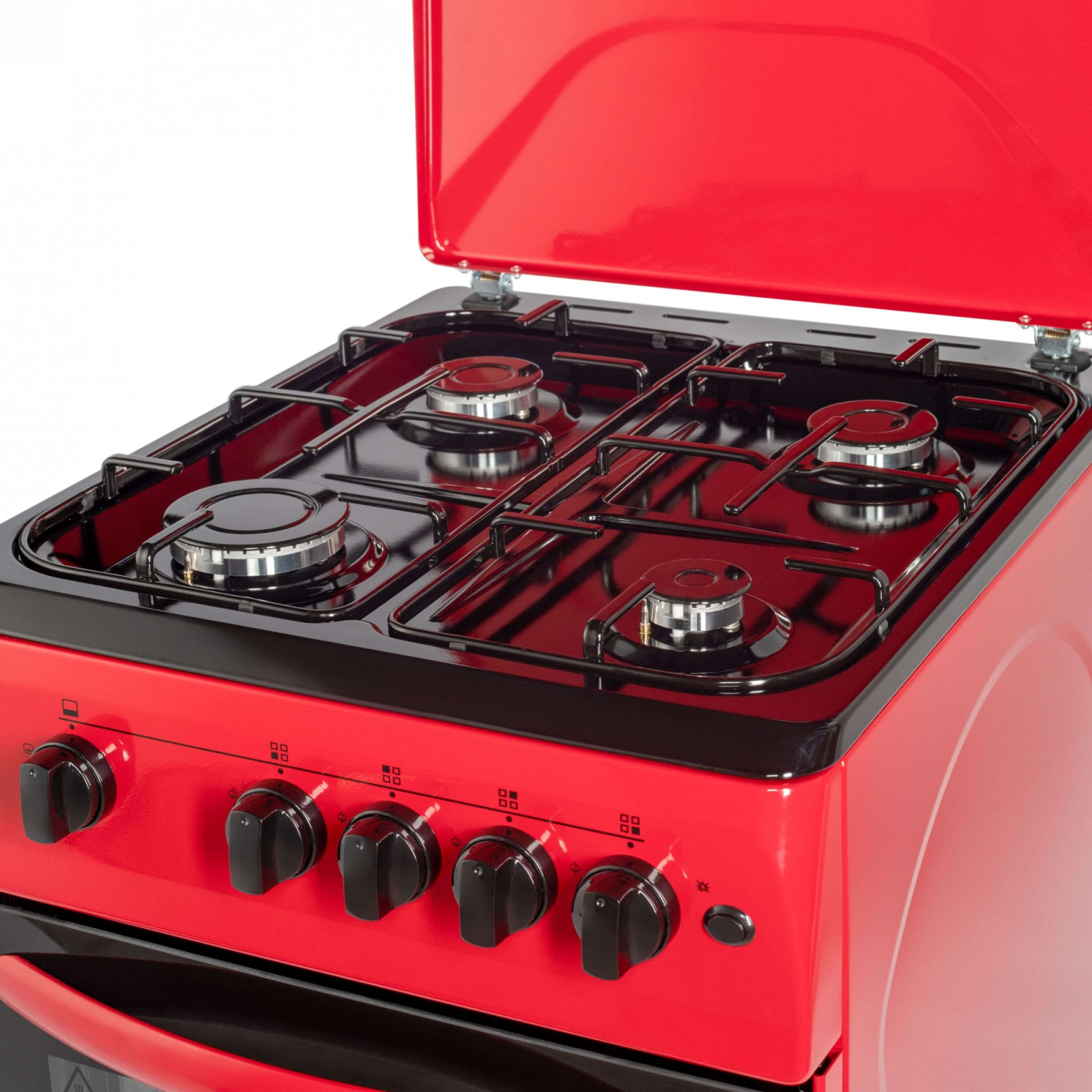 Aragaz NobelTek NLT 5602R/G1, Gaz, 4 arzatoare, Dispozitiv siguranta plita si cuptor, Aprindere electrica, 50 x 60 cm, Rosu