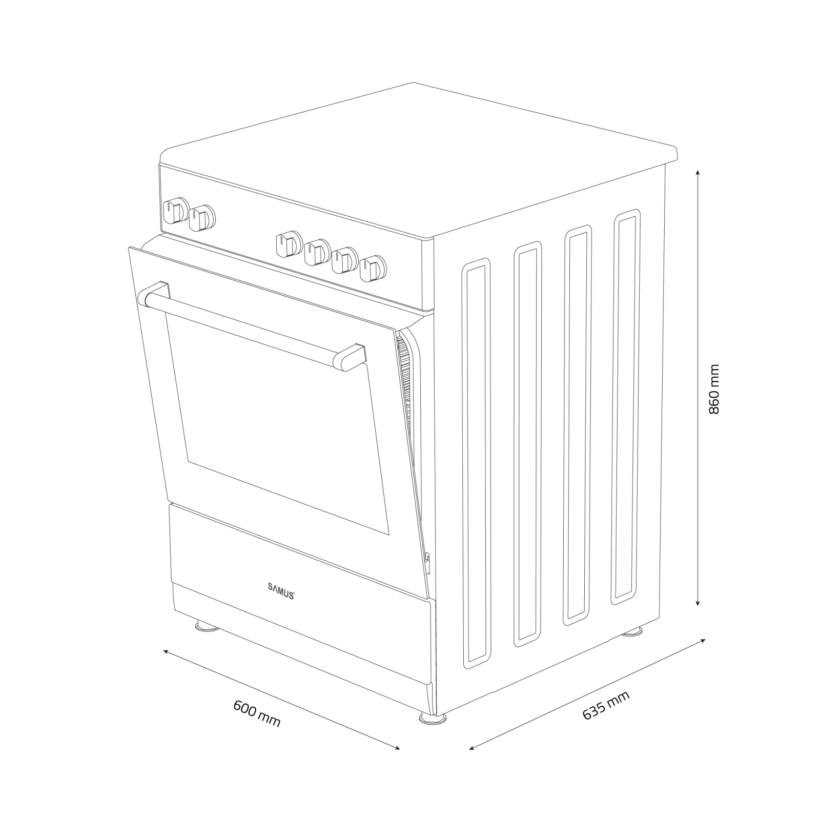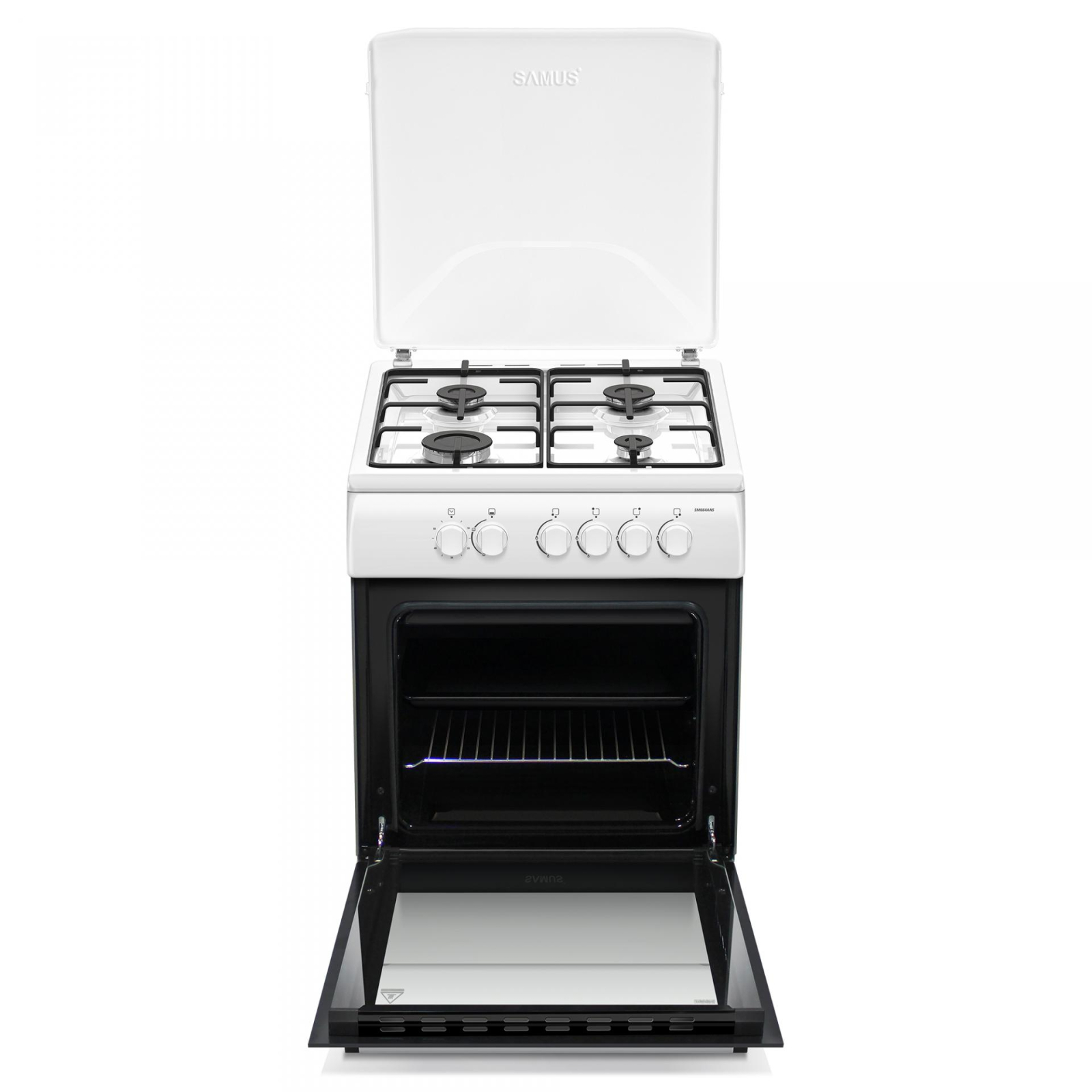 Samus Aragaz Samus, 4 arzatoare pe gaz, 60 x 60 cm, Timer, Diuze GPL separat, Cuptor pe gaz, Alb