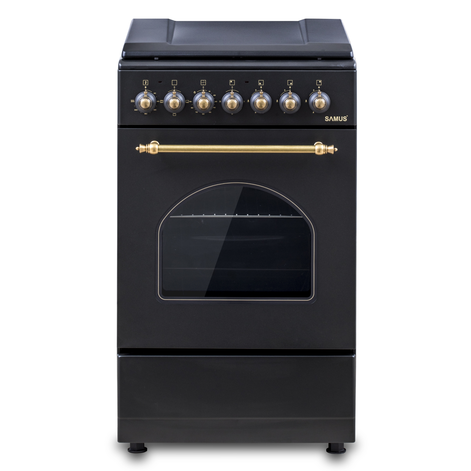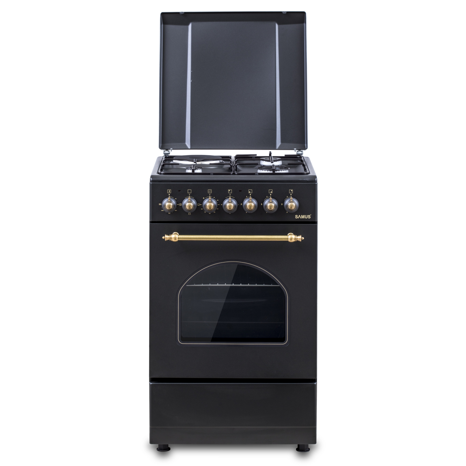 Resigilat - Aragaz Rustic Samus SR550EL3B1 – 3 Arzătoare pe Gaz + 1 Electric, + Diuze GPL, Cuptor Electric 48L, Clasa Energetică A, Negru
