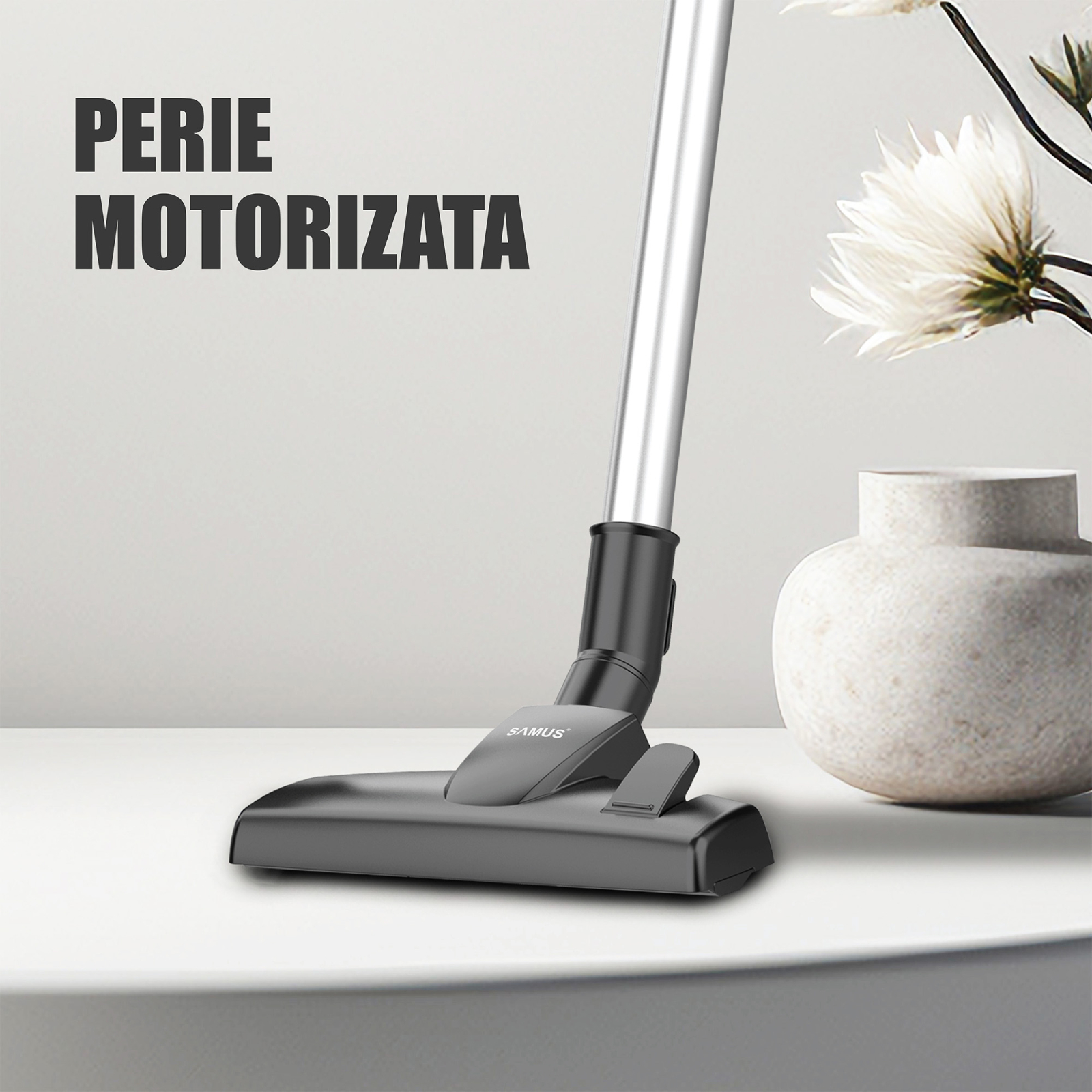 Datorita motorului de 600 W, aspiratorul Samus are si o putere de aspirare de pana 16kPA (180W). Curatenia nu a fost nicicand mai usoara! Aspira rapid orice suprafata si bucura-te de o casa curata!