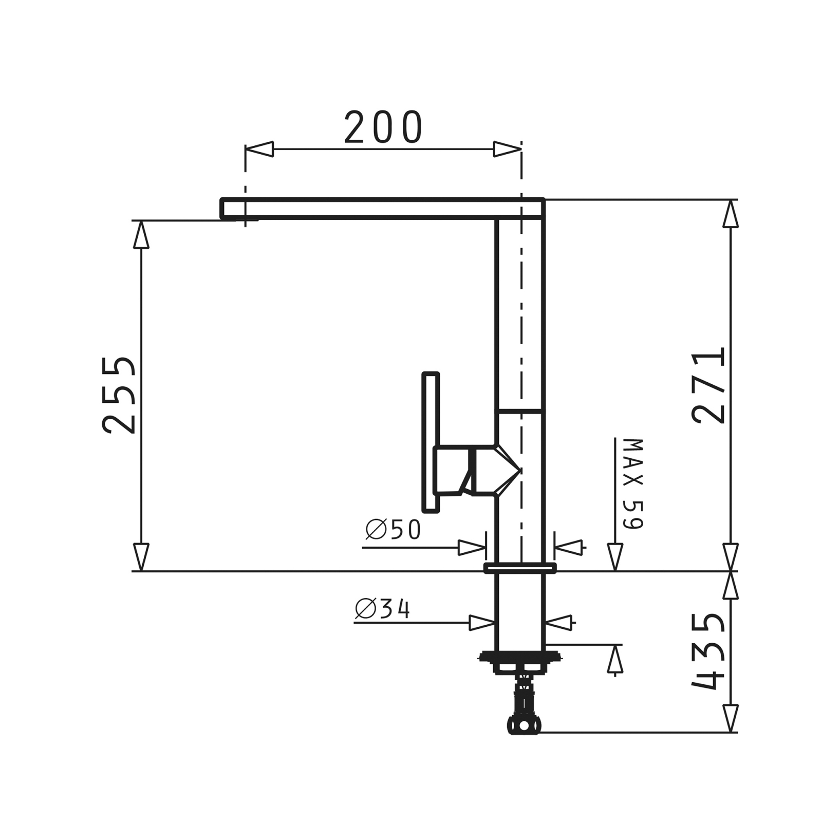 Pyramis Baterie de bucătărie Pyramis GRAZIA Crom, monocomandă, cu pipă dreaptă, aerator cu limitare de debit și finisaj crom lucios