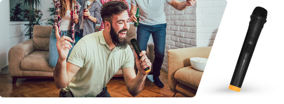 Pregateste seri de karaoke oriunde, oricand. Microfonul inclus transforma boxa intr-un produs perfect atat pentru cei mari, cat si pentru cei mici. Descopera-ti mai usor talentele! Boxa dispune de 2 mufe de intrare pentru microfon.
