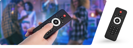 Reglezi sunetele si alegi melodiile de la distanta, pentru ca boxa Samus are si telecomanda inclusa