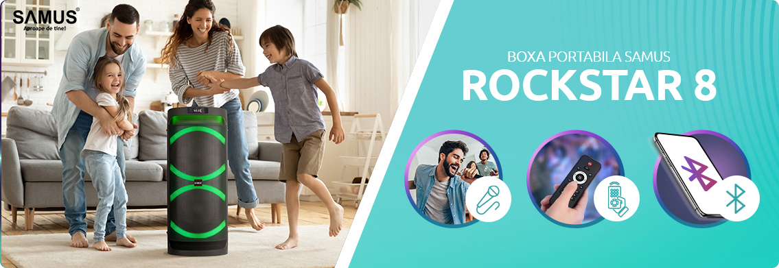 Cand ai acasa o boxa portabila si puternica, esti gata oricand de aventura! Transforma intalnirile cu prietenii in cele mai tari petreceri si ofera-ti experiente ce vor rezista peste ani. Poti fi propriul DJ si poti si iti poti provoca invitatii la cele mai tari sesiuni de karaoke. Tot ce iti trebuie gasesti in boxa portabila Samus.