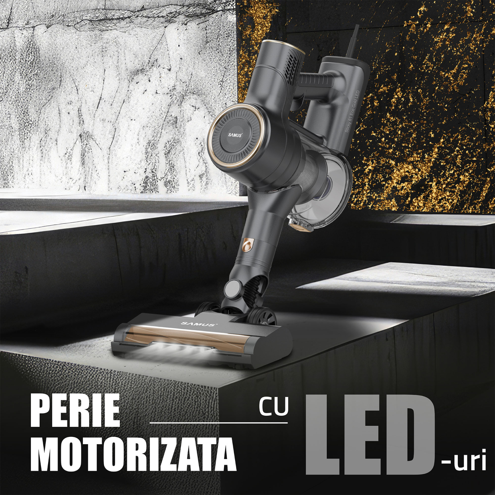 Descopera aspiratorul Samus Sticky 61 Eco Gold Led, solutia moderna pentru o locuinta curata, confortabila si sanatoasa. Cu o combinatie perfecta intre performanta, tehnologie avansata si design ergonomic, acest dispozitiv iti transforma curatenia intr-o activitate rapida si fara efort. Aspira dintr-o singura miscare si cu un minim de efort!