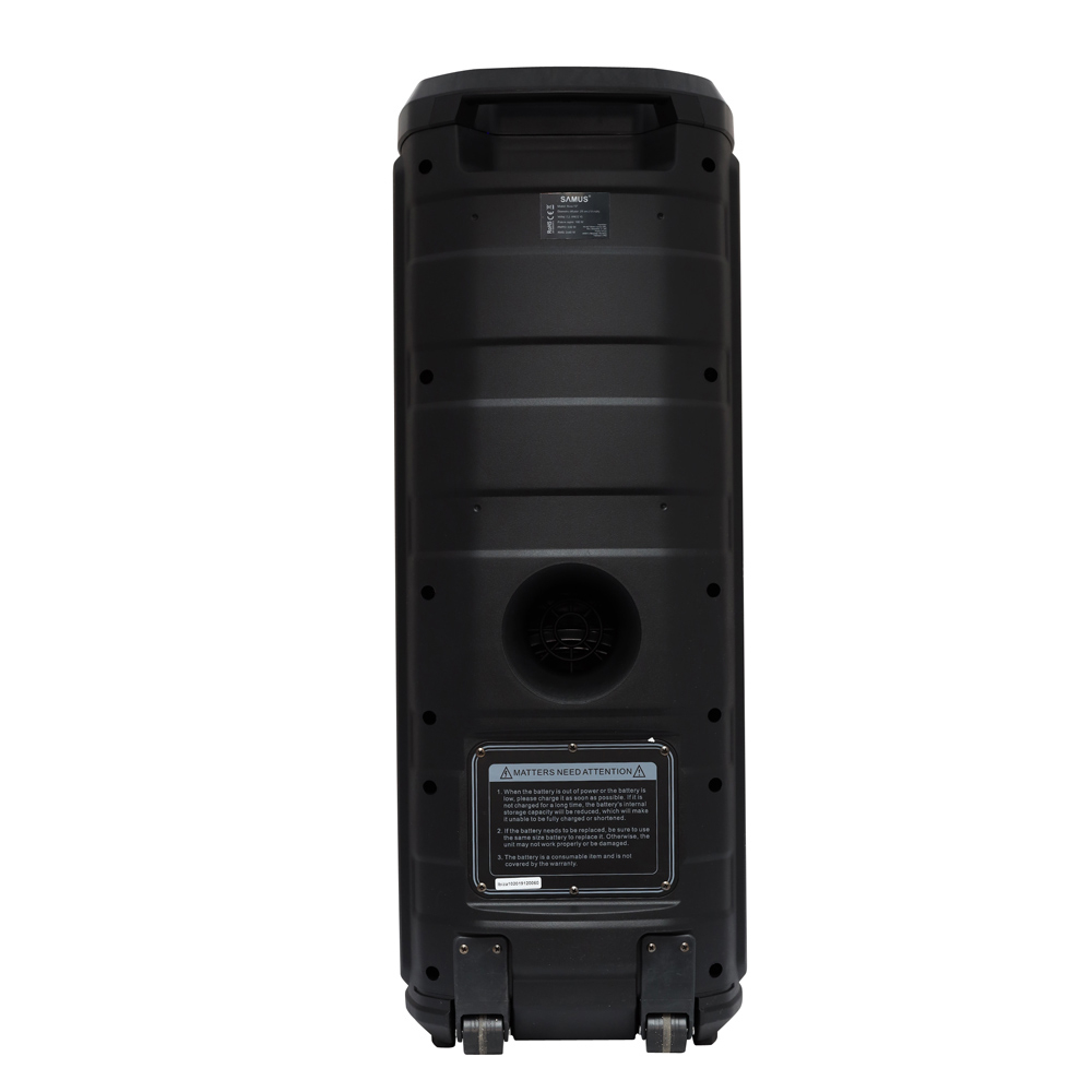 Boxă activă portabilă cu Bluetooth, 2×10” (25 cm), 160W RMS, microfon wireless, telecomandă, acumulator 12V 7.2Ah, USB/TF/AUX/FM, funcție înregistrare