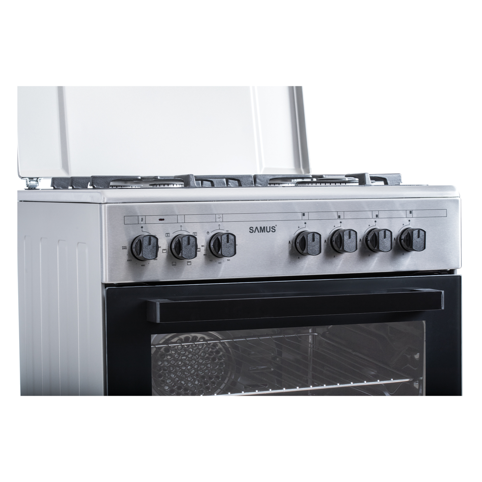Cu lateralele argintii si intreaga fata din inox, aragazul Samus se remarca prin calitate si eleganta, si, in plus, devine foarte usor de intretinut.