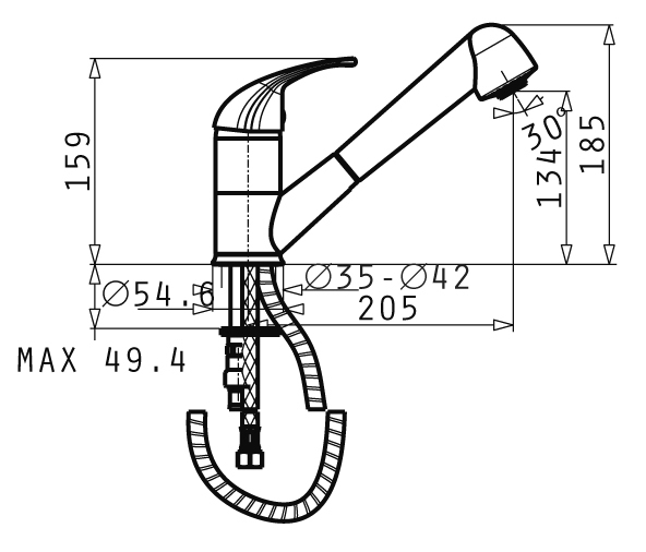 Pyramis Baterie bucătărie Festivo Snow, monocomandă, duș extractabil, finisaj granit alb durabil, combinația perfectă între design și funcționalitate