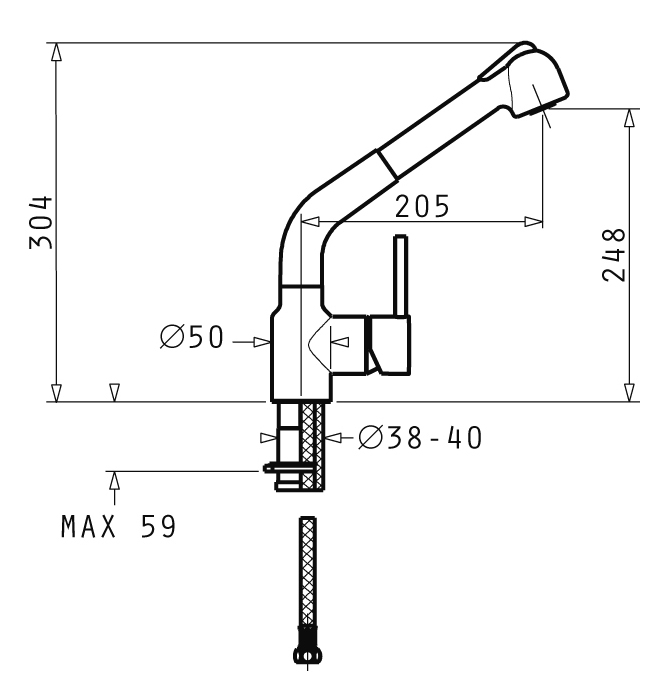 Pyramis Baterie chiuvetă bucătărie Balata Beige, monocomandă, pipă înaltă, duș extractabil, finisaj granit bej elegant și durabil, ideală pentru bucătării contemporane