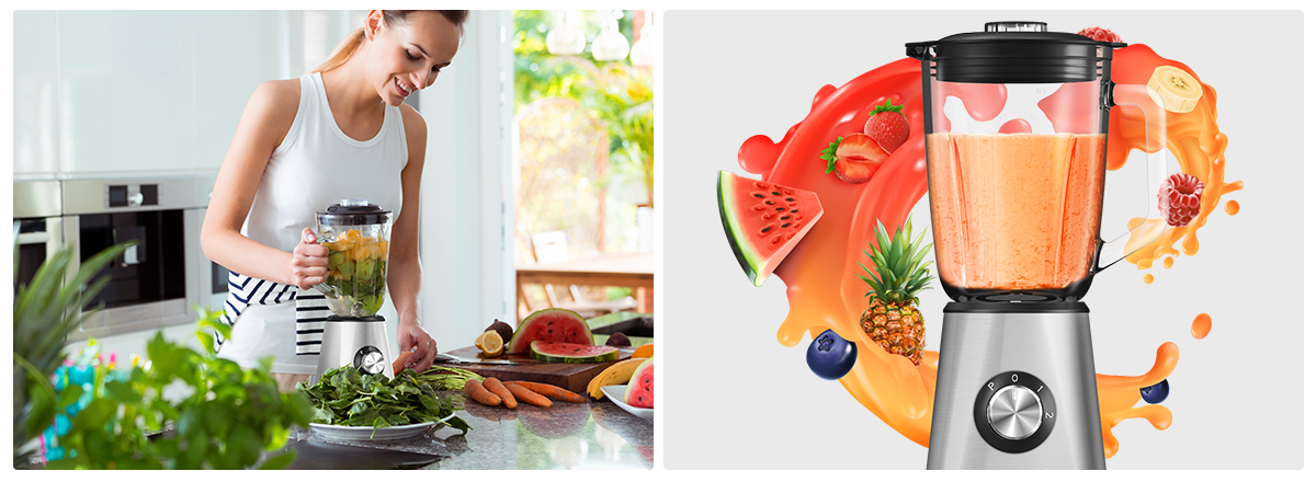 Aparatul vine cu un vas de sticla rezistent, cu o capacitate generoasa, care iti permite sa prepari cantitati mari de alimente sau bauturi intr-o singura runda. Vasul este prevazut cu masuratori clare, pentru a ajuta in dozarea ingredientelor cu precizie.
