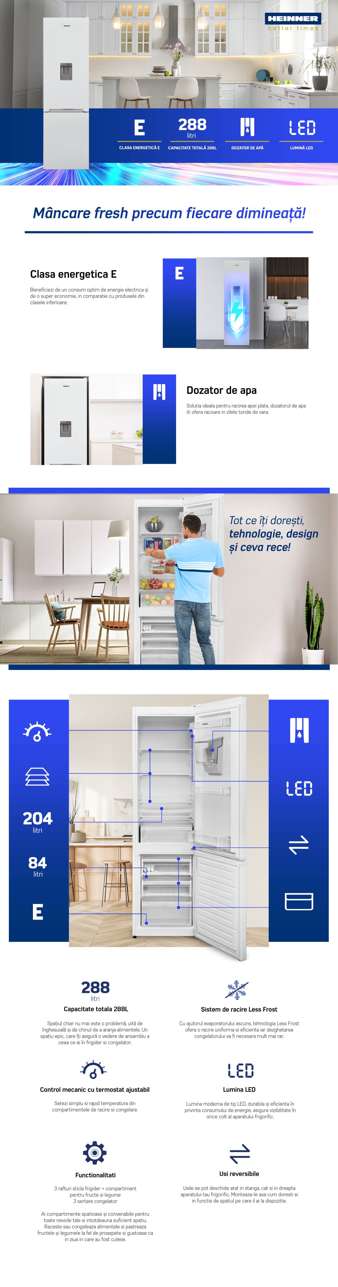 Ladă frigorifică Heinner HCF-HM371CE++, 371L, Control Electronic, Clasă Energetică E, Alb