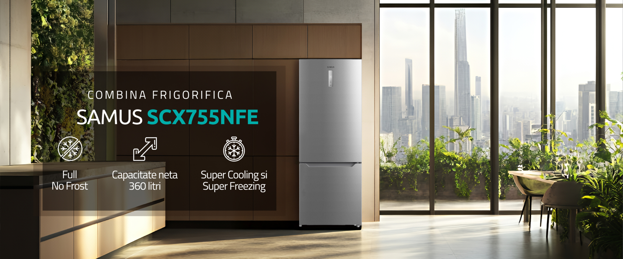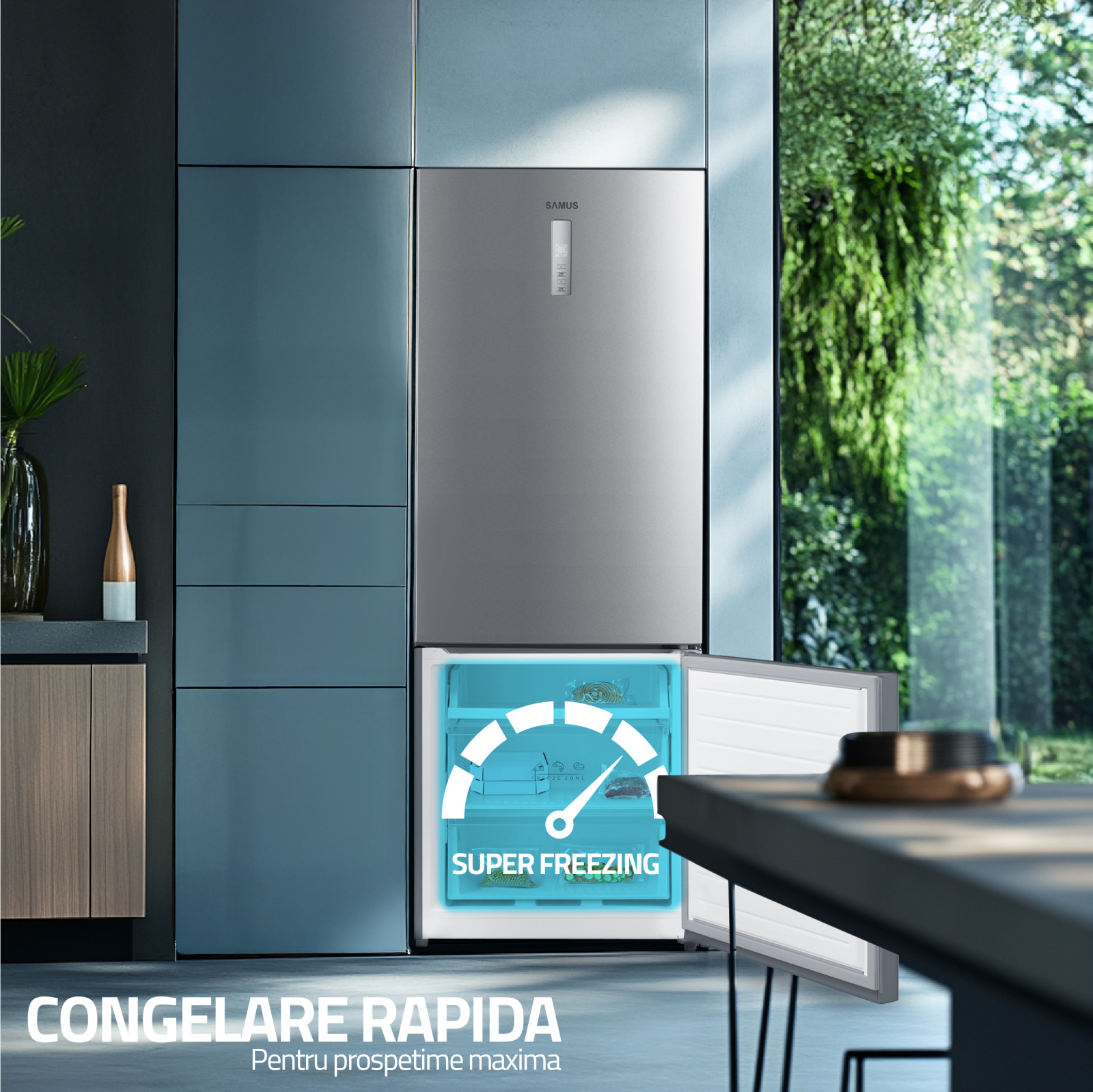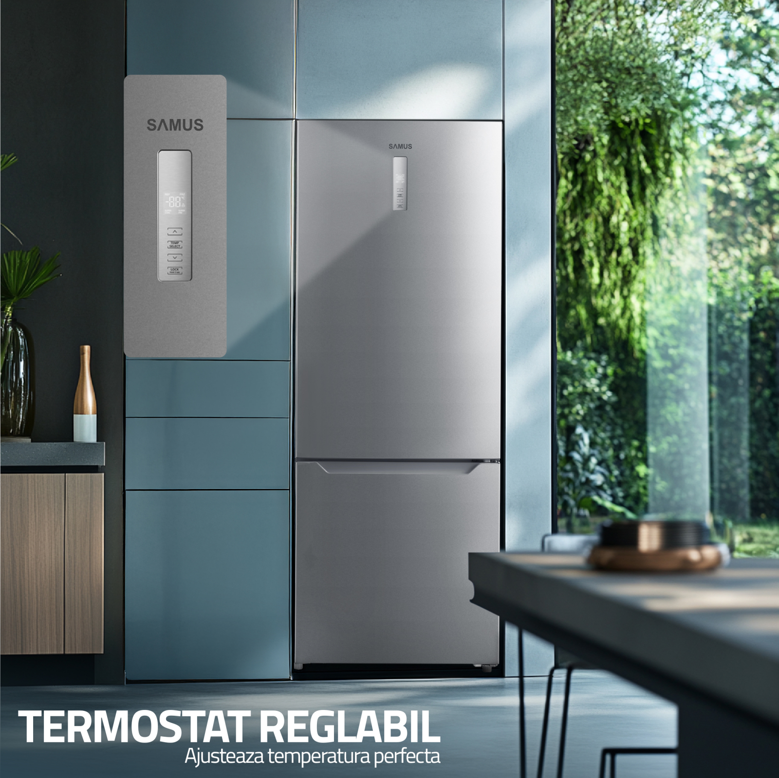 Combina frigorifica Samus incorporeaza tehnologia si eleganta intr-un produs fiabil, de dimensiuni mari, potrivit in bucataria casei tale, gata sa iti ofere in permanenta solutiile potrivite in ceea ce priveste depozitarea alimentelor si a bauturilor, pastrarea lor la cele mai optime temperaturi, economie in ceea ce priveste consumul de energie electrica, fiabilitate, usurinta in curatare si o durata de viata prelungita datorita materialului din care este fabricata.