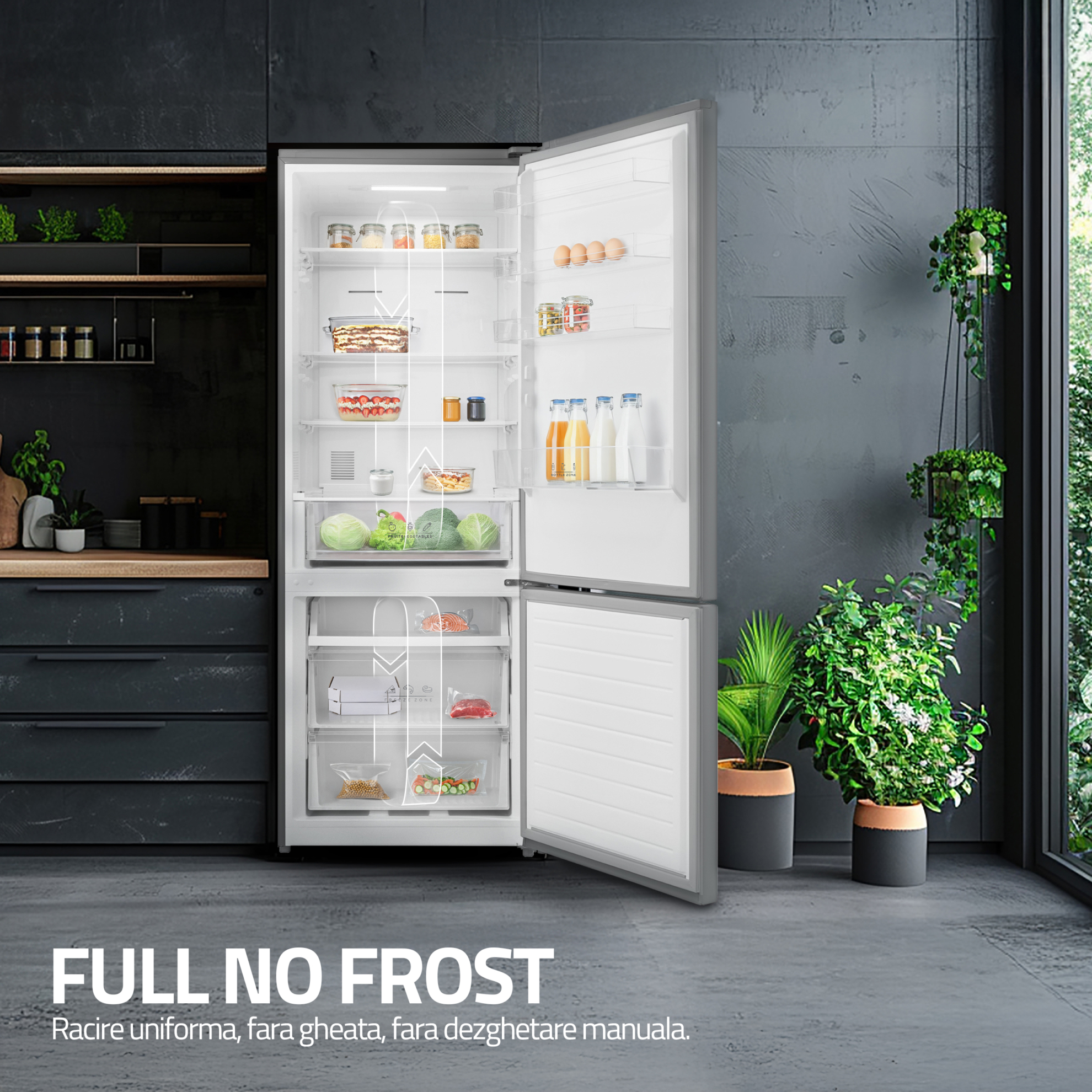 Bucura-te de tot confortul! Cu ajutorul sistemului Full No-Frost uiti de dezghetarea manuala a combinei.