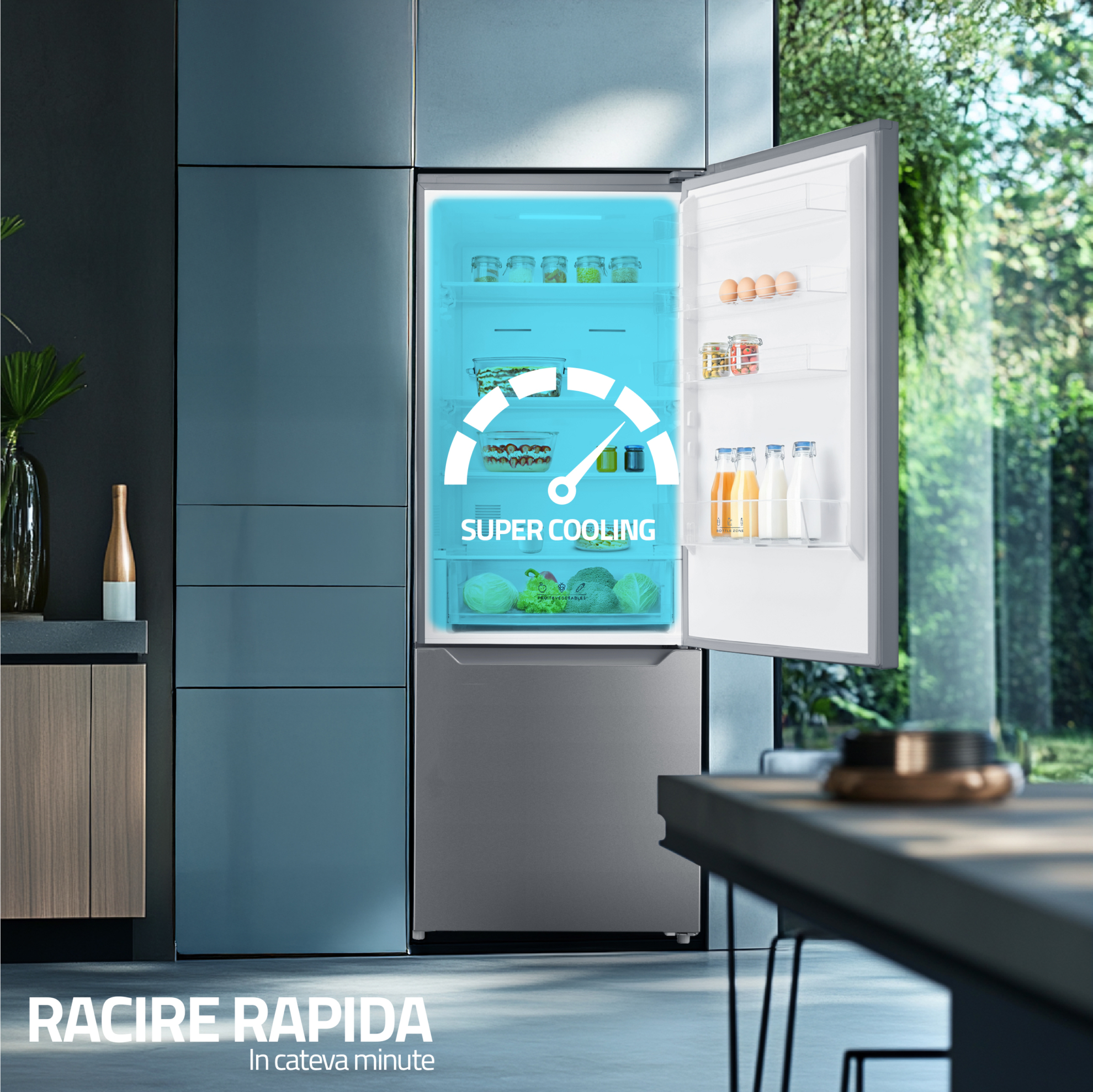 Esti pe graba? Vin musafirii si vrei sa racesti bauturile cat mai repede? Selectand acest mod, temperatura din interiorul frigiderului va cobora pana la valoarea cea mai mica timp de aproximativ doua ore. Apoi, se restabileste temperatura setata inainte de activarea acestui mod.