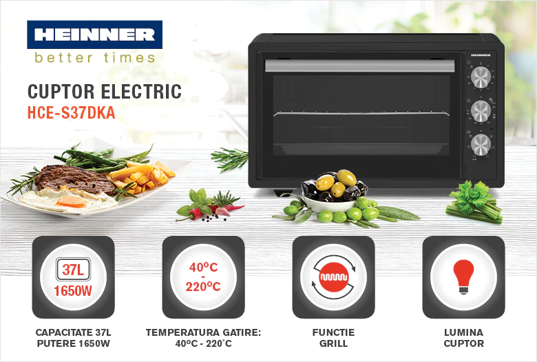 Functii | Grill, Incalzire sus, Incalzire jos, Incalzire sus si jos, Gatire asistata de ventilatie, Decongelare |