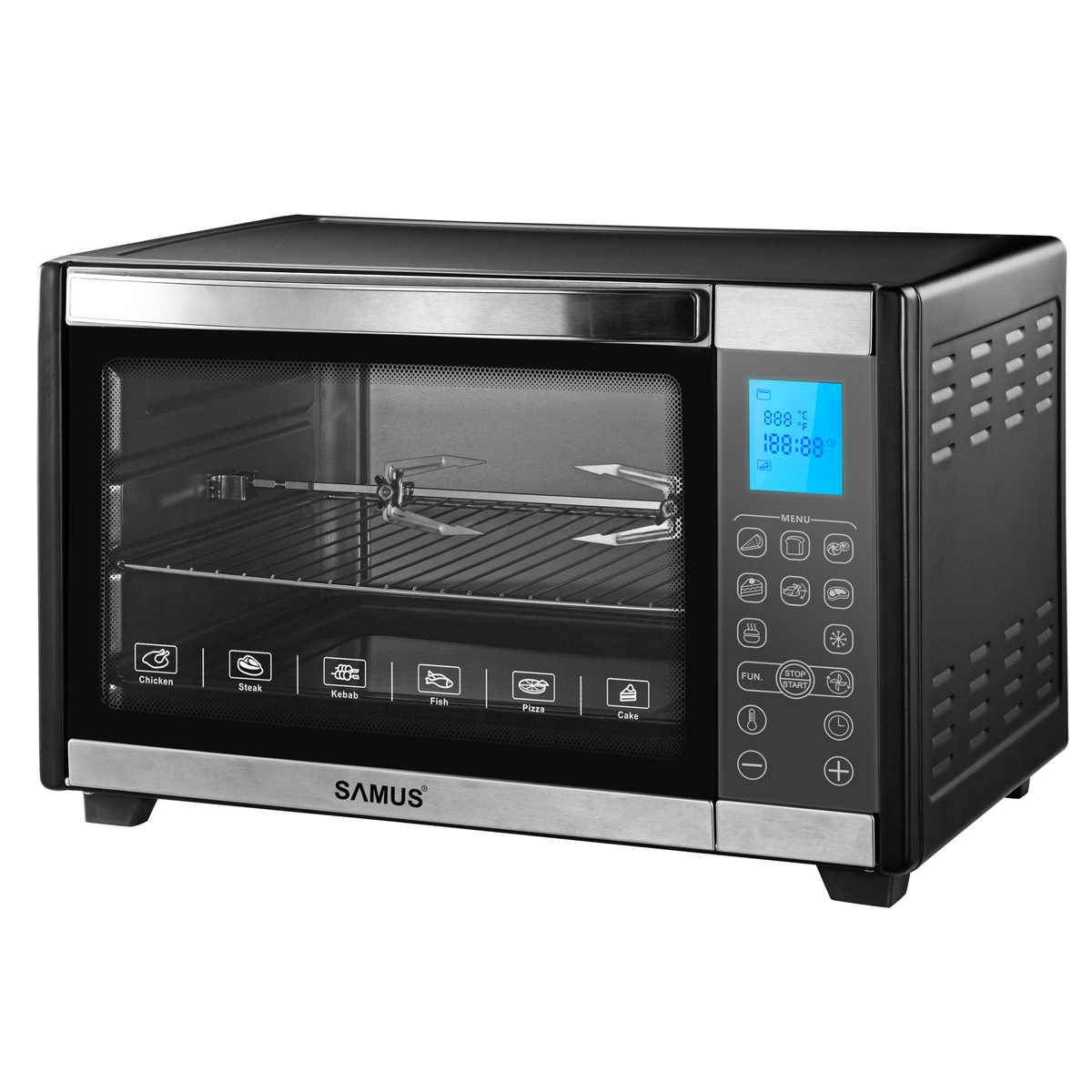 E timpul sa prajituresti, sa gatesti, sa pui in practica cele mai inventive retete si sa surprinzi membrii familiei cu cele mai delicioase fripturi. Cuptorul electric Samus vine in ajutorul tau, oferindu-ti solutia ideala pentru bucataria ta. Incapator, elegant si modern, cu ecran LCD, acesta iti va gasi rapid un loc potrivit in orice colt al bucatariei si se va transforma intr-un aliat de care ai nevoie de fiecare data cand vrei sa prepari masa sau desertul pentru cei dragi.