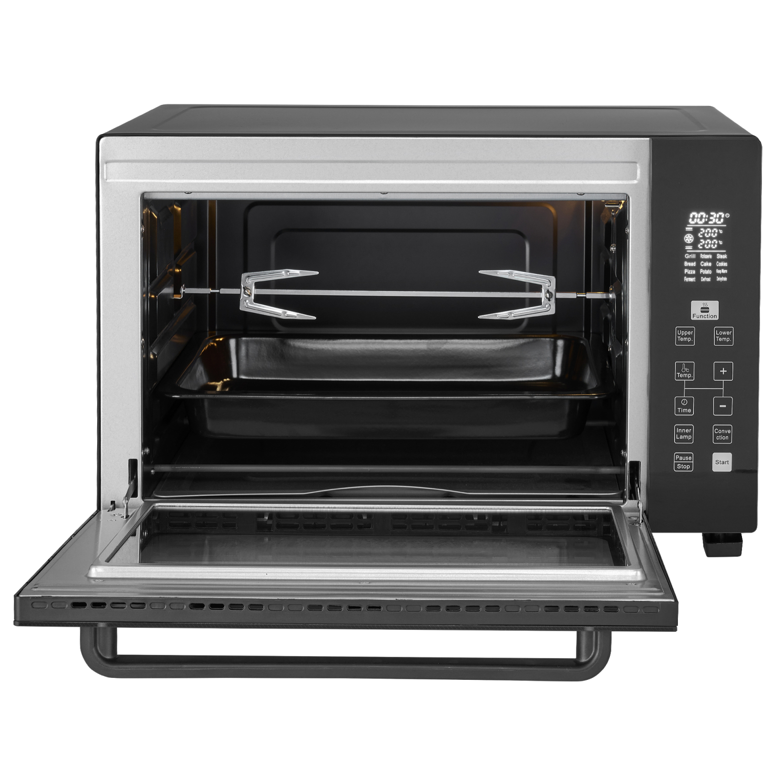 In cutia cuptorului vei gasi o tava mare pentru copt, un gratar din inox, accesoriul pentru rotisare si cos special conceput pentru prepararea cartofilor sau legumelor.Accesorii incluse