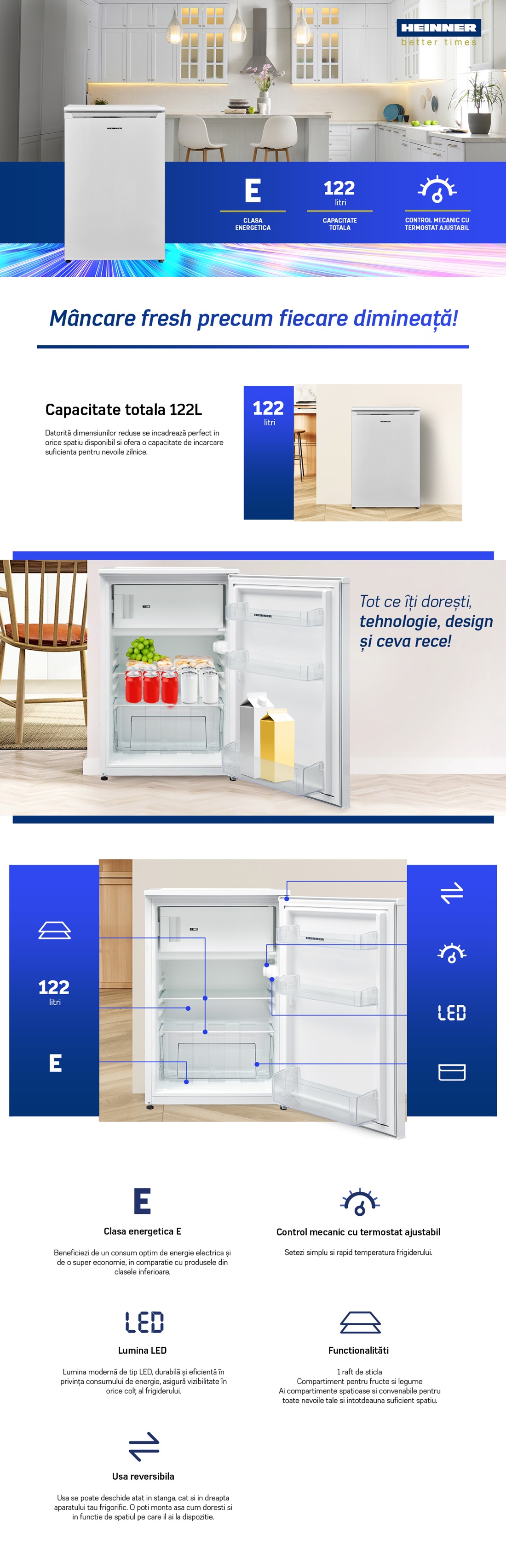 Ladă frigorifică Heinner HCF-HM371CE++, 371L, Control Electronic, Clasă Energetică E, Alb