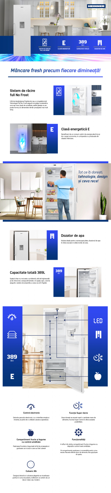 Ladă frigorifică Heinner HCF-HM371CE++, 371L, Control Electronic, Clasă Energetică E, Alb