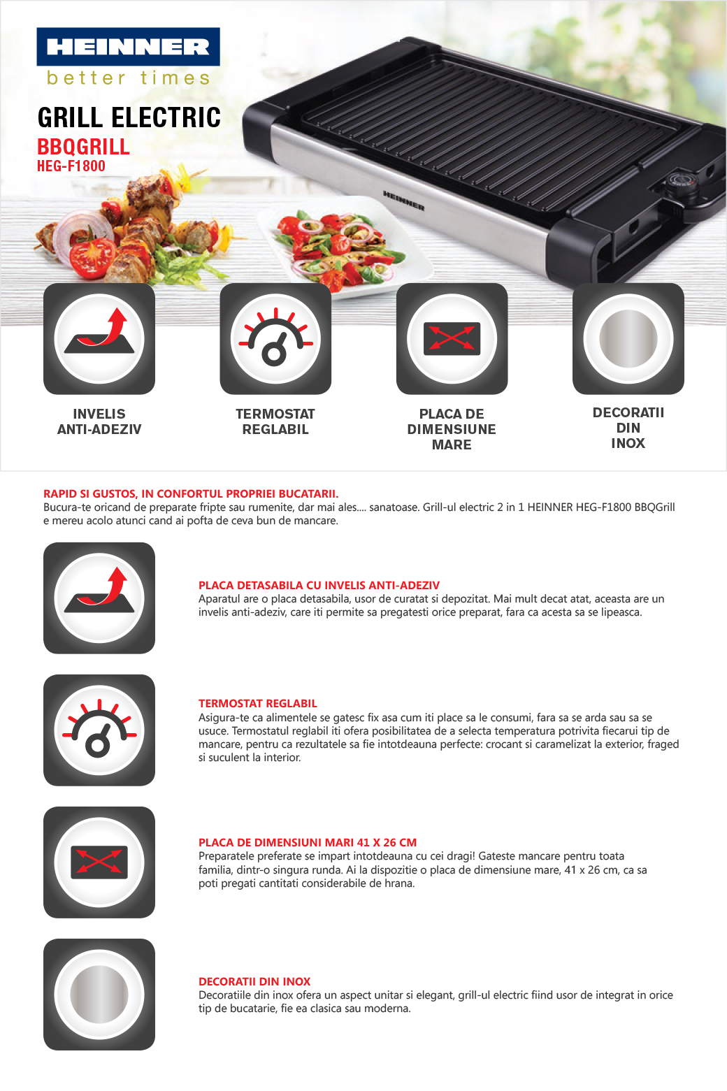 Grătar electric HEINNER HEG-F1800 – Gătit simplu și gustos, zi de zi!