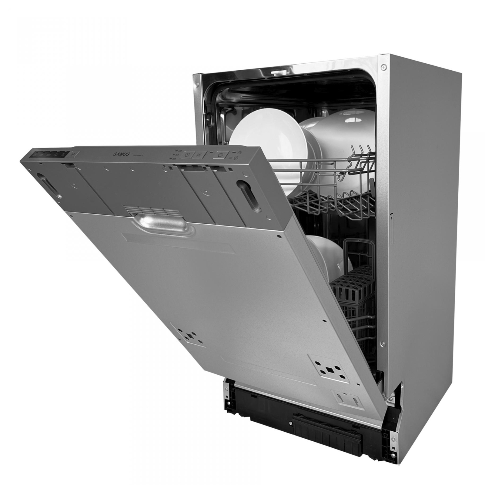 Rezultatele perfecte apar cu consum redus de energie electrica. Incadrata in clasa energetica E, masina de spalat vase Samus te ajuta sa economisesti timp si bani