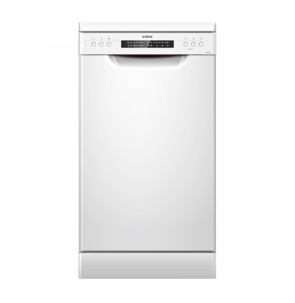 Masina de spalat vase Samus SDW46.6, 45 cm, 9 seturi, 6 programe, clasa E, Extra Uscare, pornire întârziată, blocare copii, albă