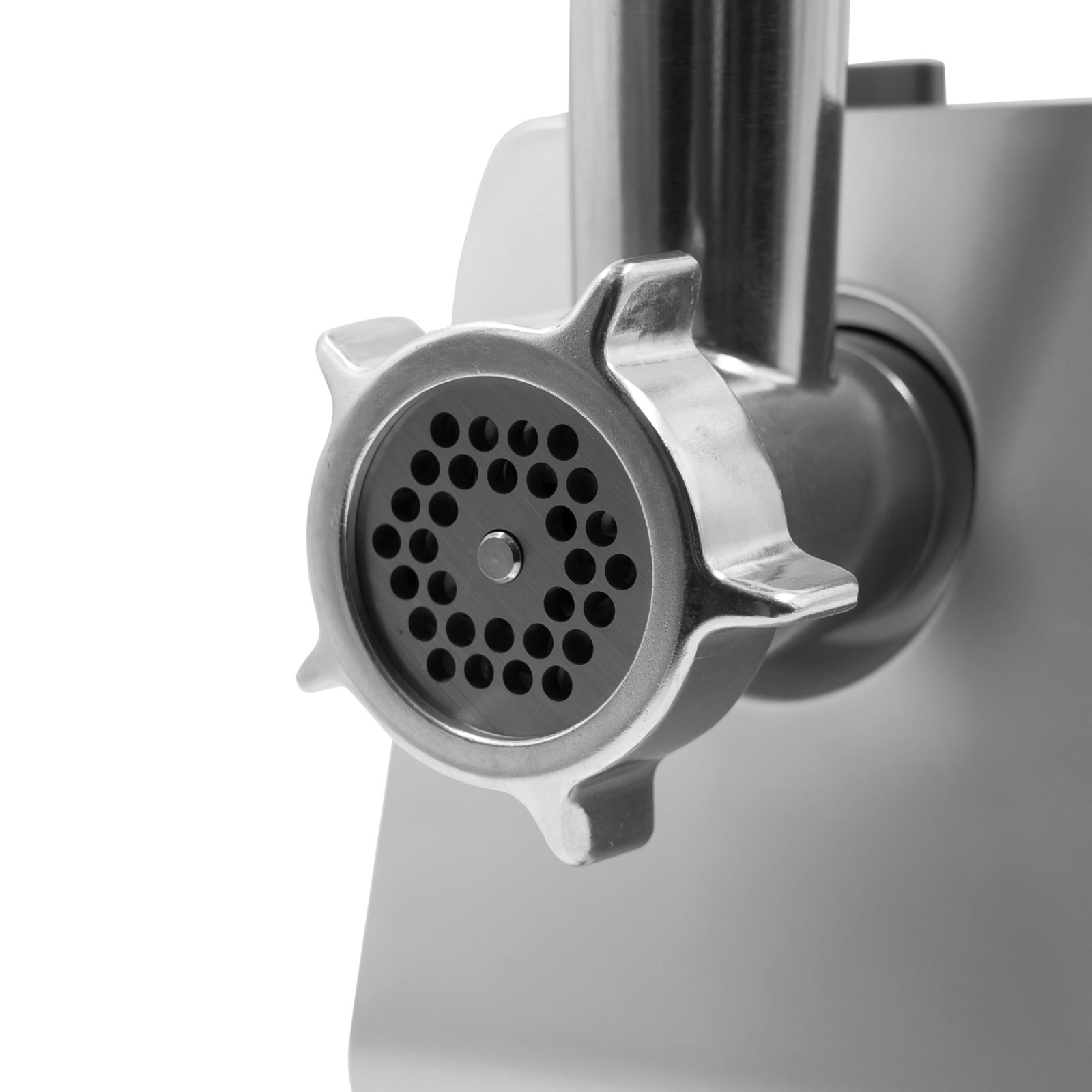 Masina de tocat Albatros MTA1510R, 1500 W (motor 500 W), 1.8 kg/min, 3 site inox (3/5/7 mm), accesorii cârnați, kibbe și separator de roșii, culoare roșie