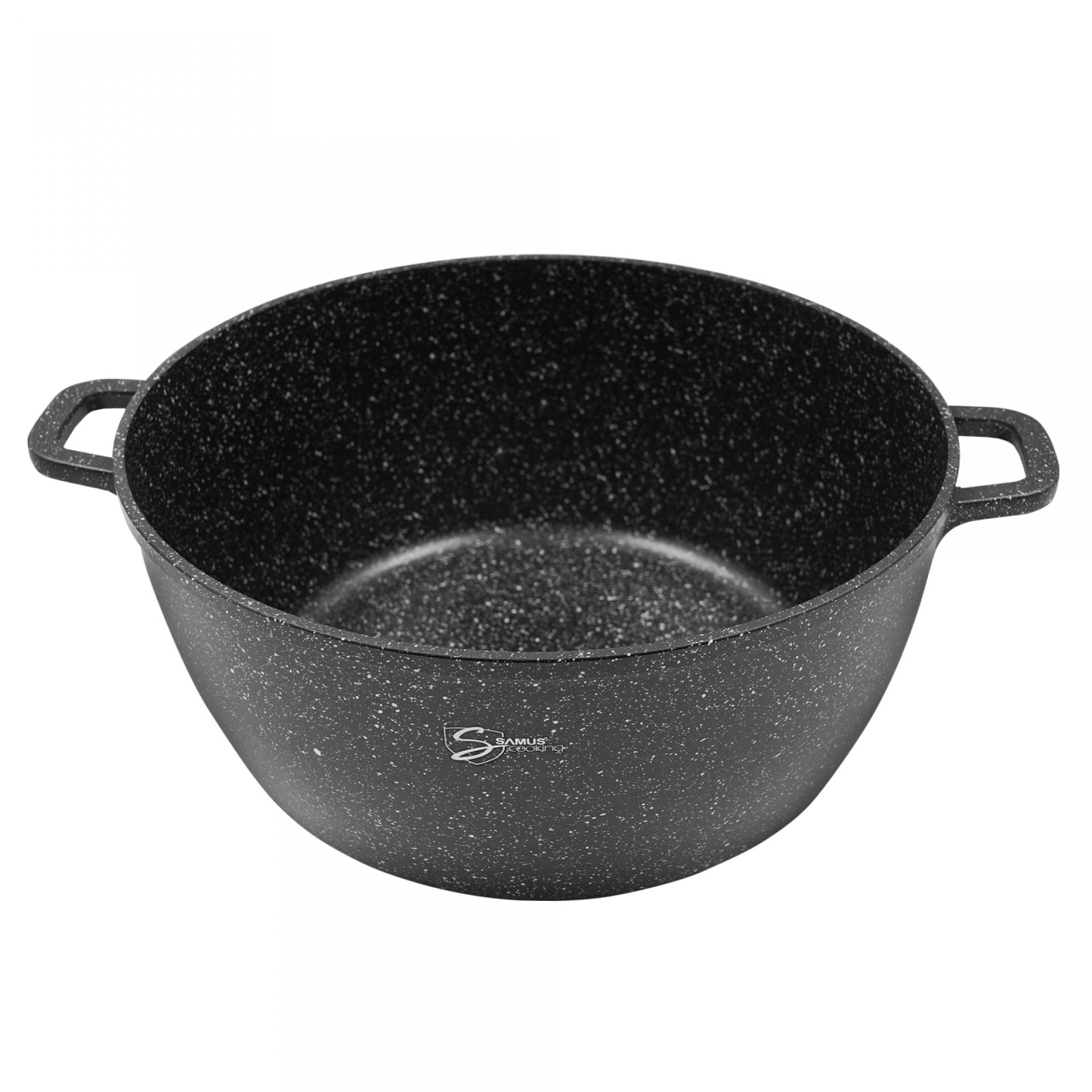 Oala Samus din aluminiu turnat asigura o distributie uniforma a caldurii pe intreaga sa suprafata, facilitand gatirea mancarii mai uniforma si reducand riscul de a arde anumite zone sau de a ramane negatite.