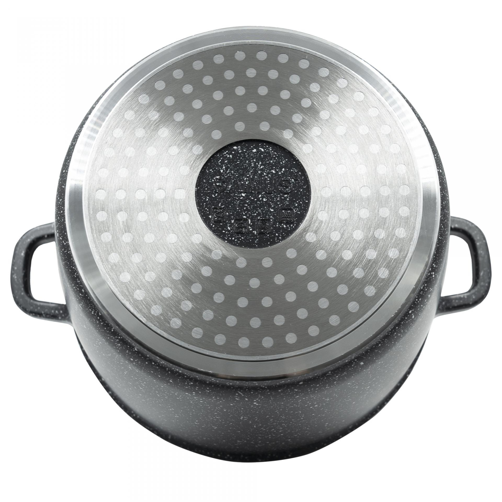 Oala Samus din aluminiu turnat asigura o distributie uniforma a caldurii pe intreaga sa suprafata, facilitand gatirea mancarii mai uniforma si reducand riscul de a arde anumite zone sau de a ramane negatite.