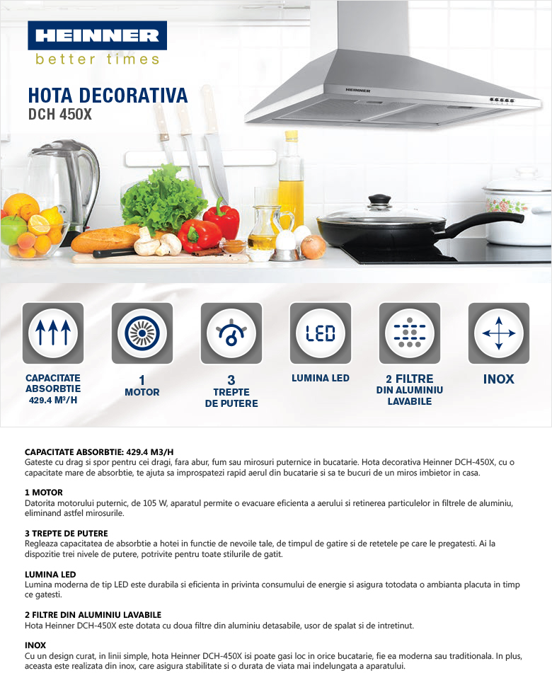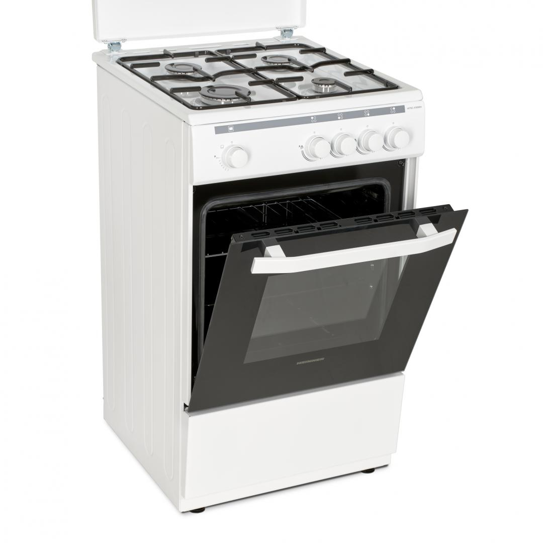 Pachet - Aragaz Heinner HFSC-V50WH, 4 arzatoare, Gaz, Dispozitiv de siguranta plita/cuptor, 50 cm, Alb + Hota decorativa 429.4 mc/h, LED, 60 cm