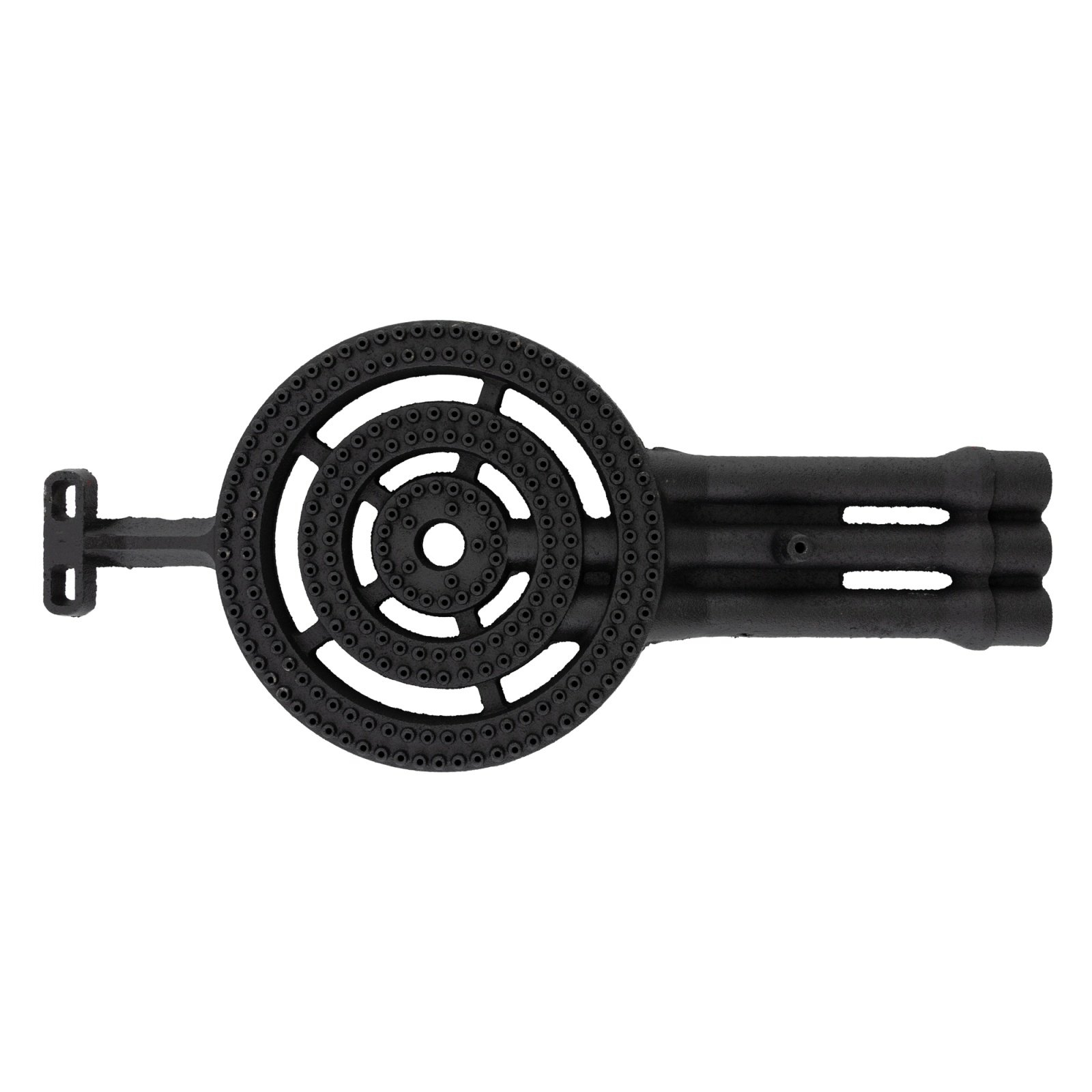 Arzator/Pirostrie cu 3 inele, R03, gaz, propan-butanArzator Pirostrie Elefant TSGB08-TC cu trei inele din fonta pentru utilizare in spatiile exterioare camping gradina curte. Alimentarea cu gaz se face prin duza cu valve de la capatul arzatorului la care se poate conecta butelia. Folositi un kit cu ceas pentru GPL. Acest model este prevazut cu trei inele si trei orificii tubulare. La alegearea utilizatorului se poate opta pentru utilizarea unu singur inel blocand accesul gazului in celelelte doua. Fiecare dintre cele trei duze de alimentare poate fi inchisa. Suplimentar este necesar de reglat debitul de aer care patrunde in teava. Aerul mentine flacara si trebuie reglat pana obtineti o flacara galbena. Daca aceasta devine albastra largiti spatiul de patrundere a aerului prin desfiletarea piulitelor in forma de disc de pe duze.