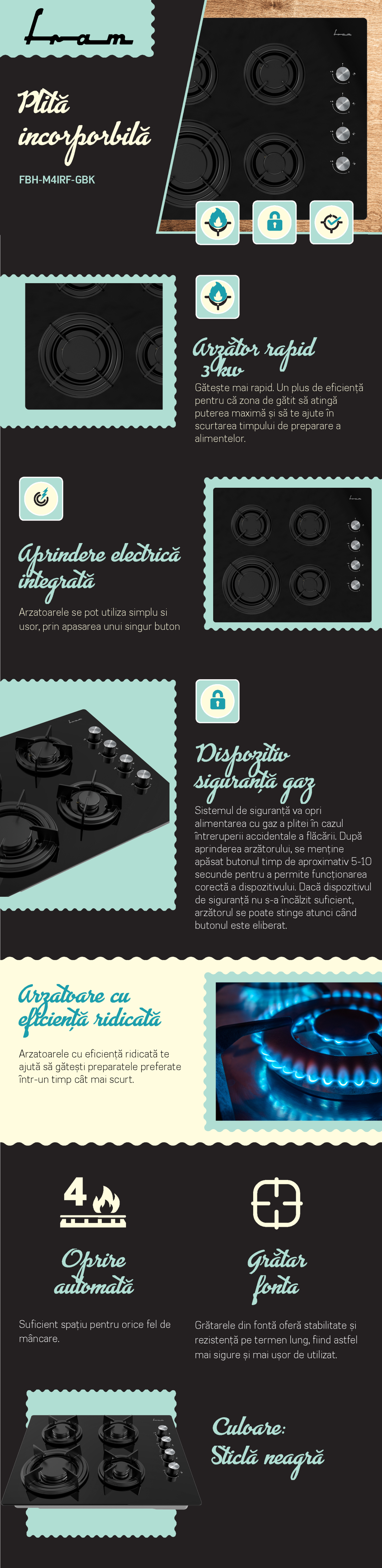 Pachet - Hota Decorativă HEINNER DCH-350RGBK + Plită Incorporabilă FRAM FBH-M4IRF-GBK, Gaz, 4 Zone, Sticlă Neagră, Capacitate Absorbție 276.6 m³/h, Negru