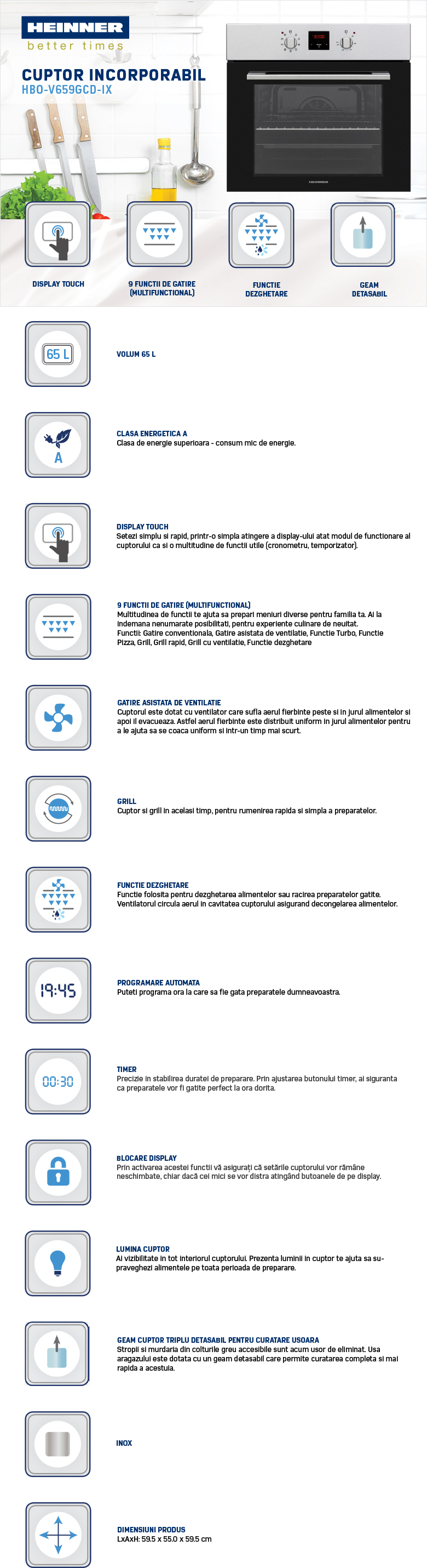 Detalii Cuptor Incorporabil HEINNER HBO-V659GCD-IX: