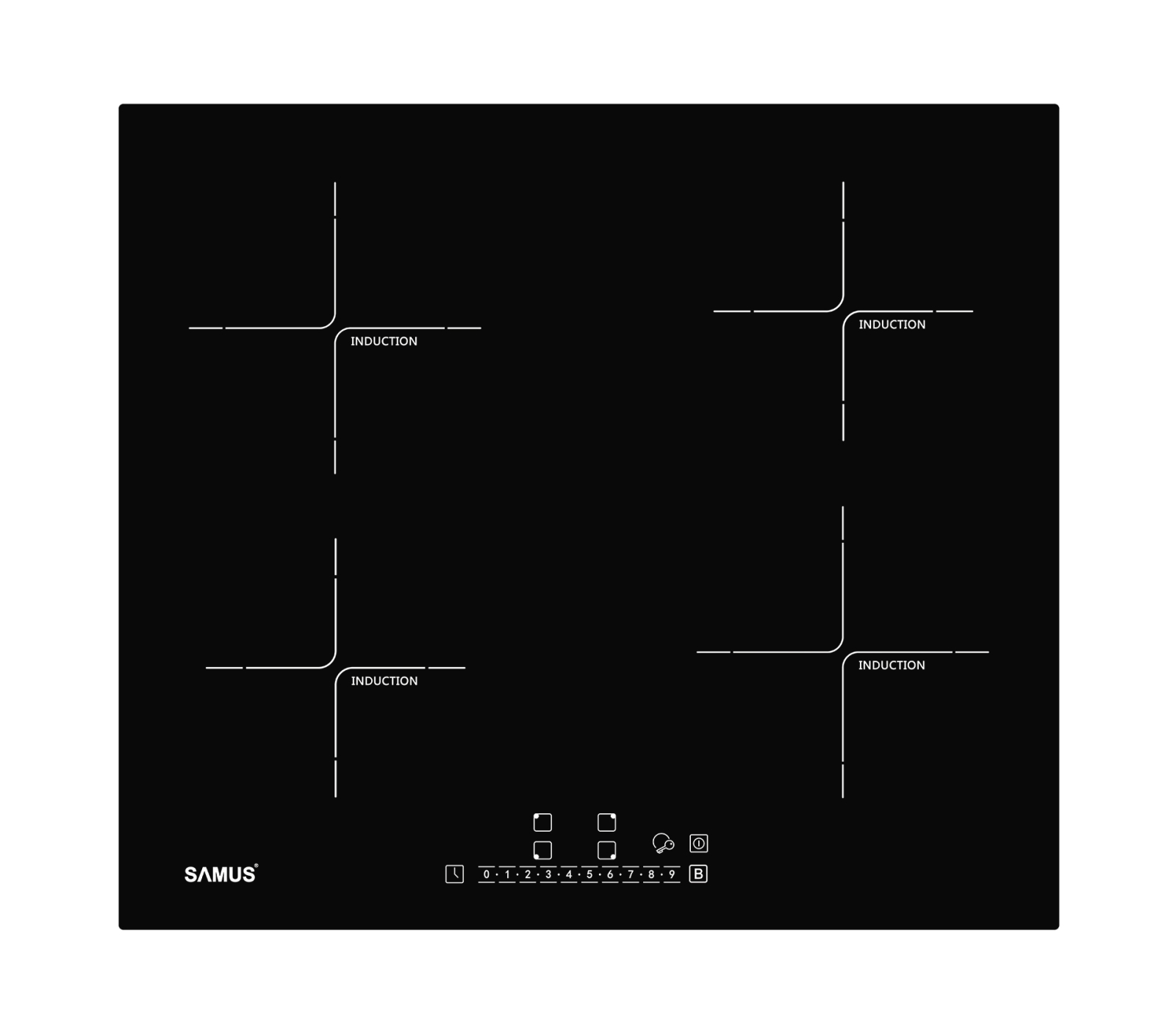 Plită cu inducție 4 zone Samus PSI-64BG7, 60 cm, 7000W, panou Touch, timer digital, blocare copii, neagră