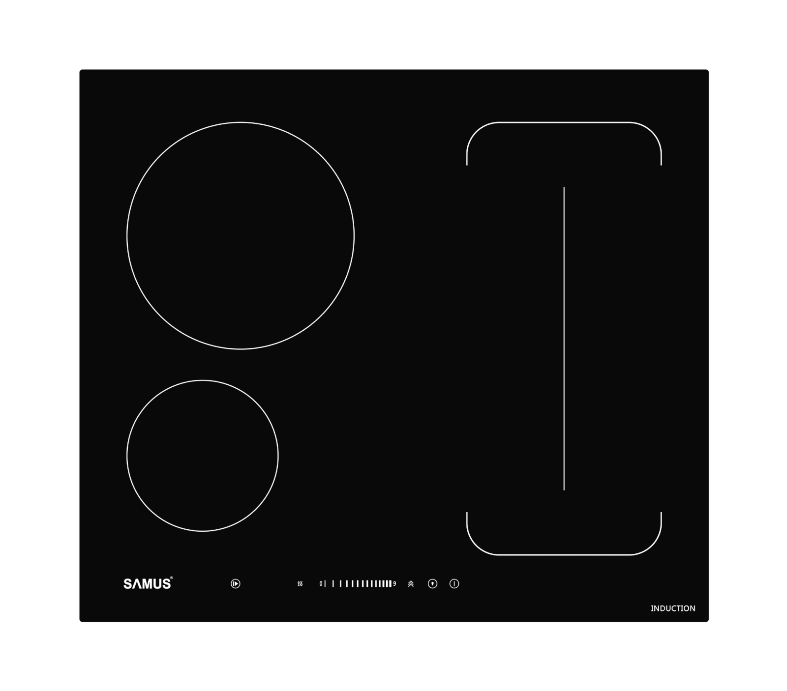Plita cu inductie Samus PSI-64BG9, Latime 60 cm, 3 zone de gatit, Flex Zone, Blocare copii,, Touch Control, Negru