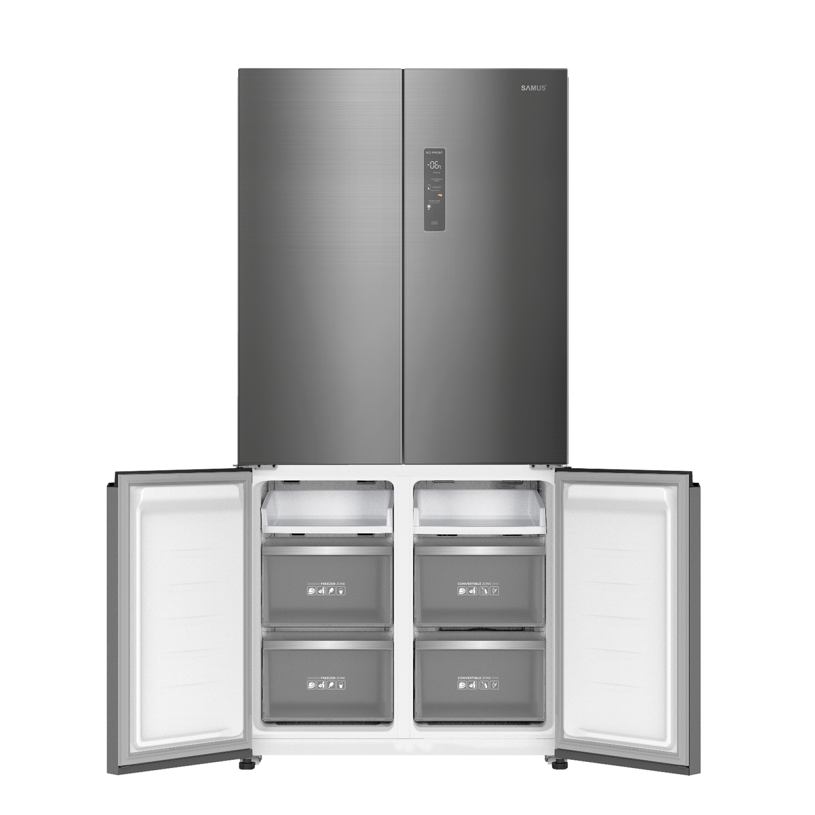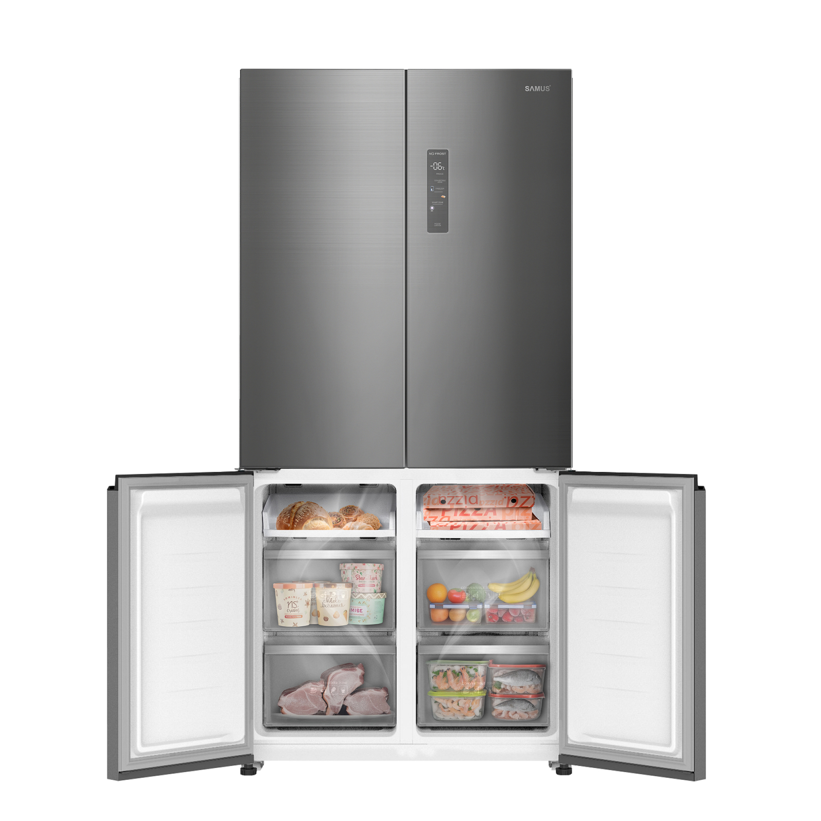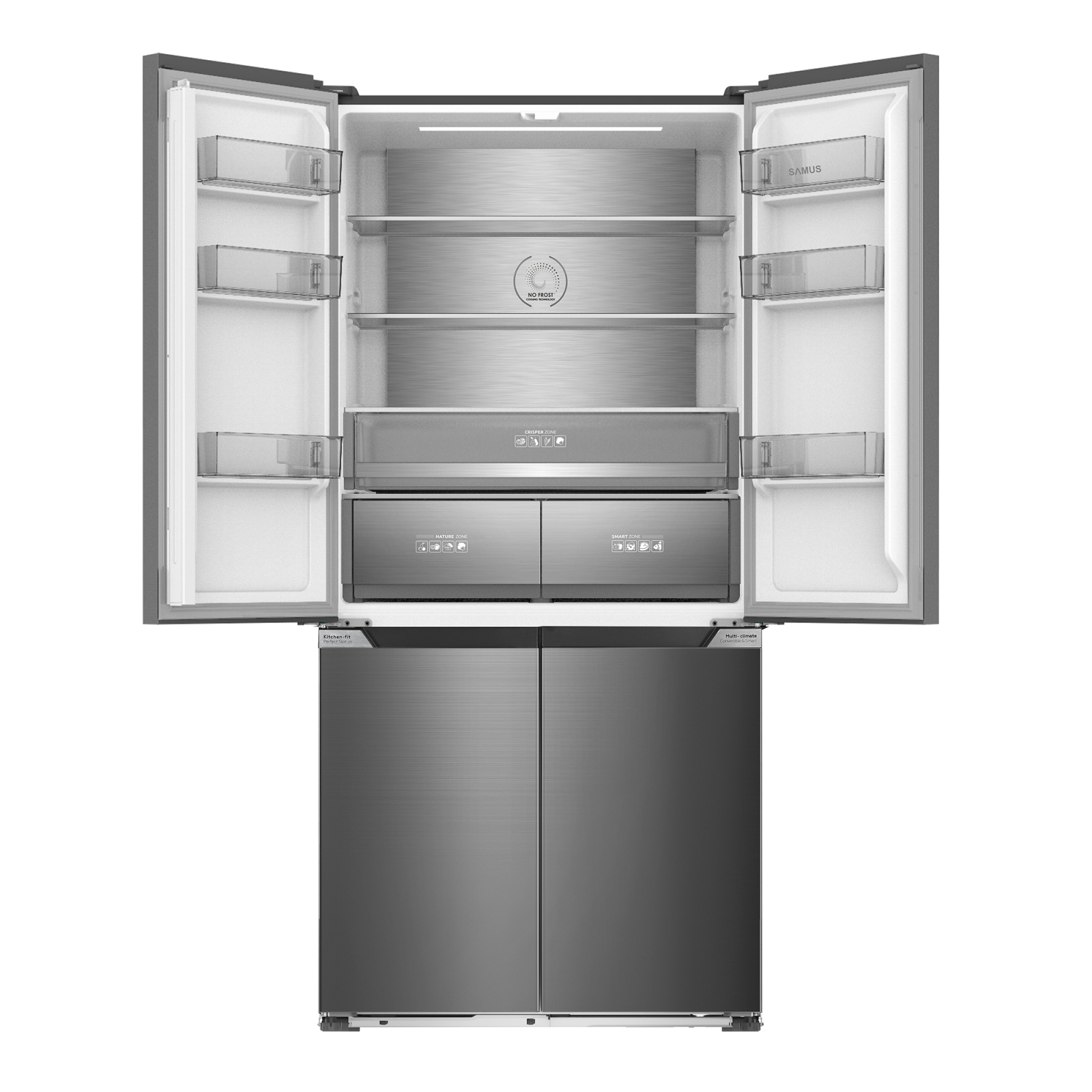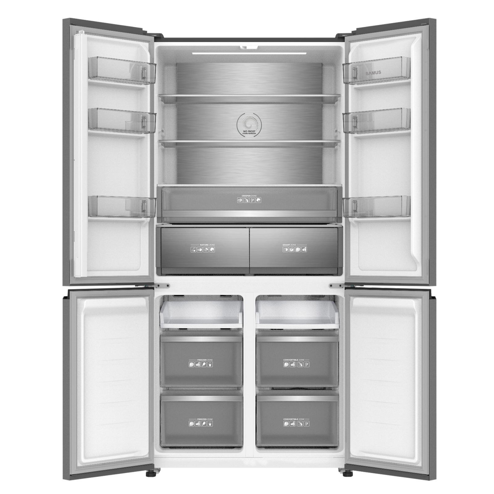 Descopera noul Side by Side Samus cu 4 usi! Eleganta imbina perfect cele main oi tehnologii, iar Side by Side-ul Samus se transforma in mai mult decat un simplu aparat frigorific! Gata sa raspunda instant nevoilor si dorintelor tale, acesta te surprinde cu o serie de optiuni ce iti ofera fiabilitate si o mai mare flexibilitate