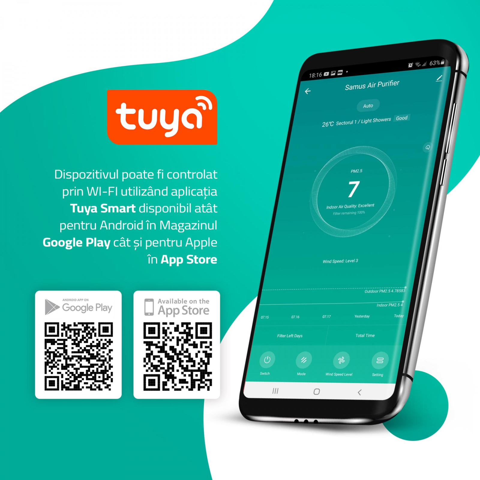 Dispozitivul poate fi controlat prin WI-FI utilizând aplicatia Tuya Smart disponibil atât pentru Android în Magazinul Google Play cat si pentru Apple in App Store