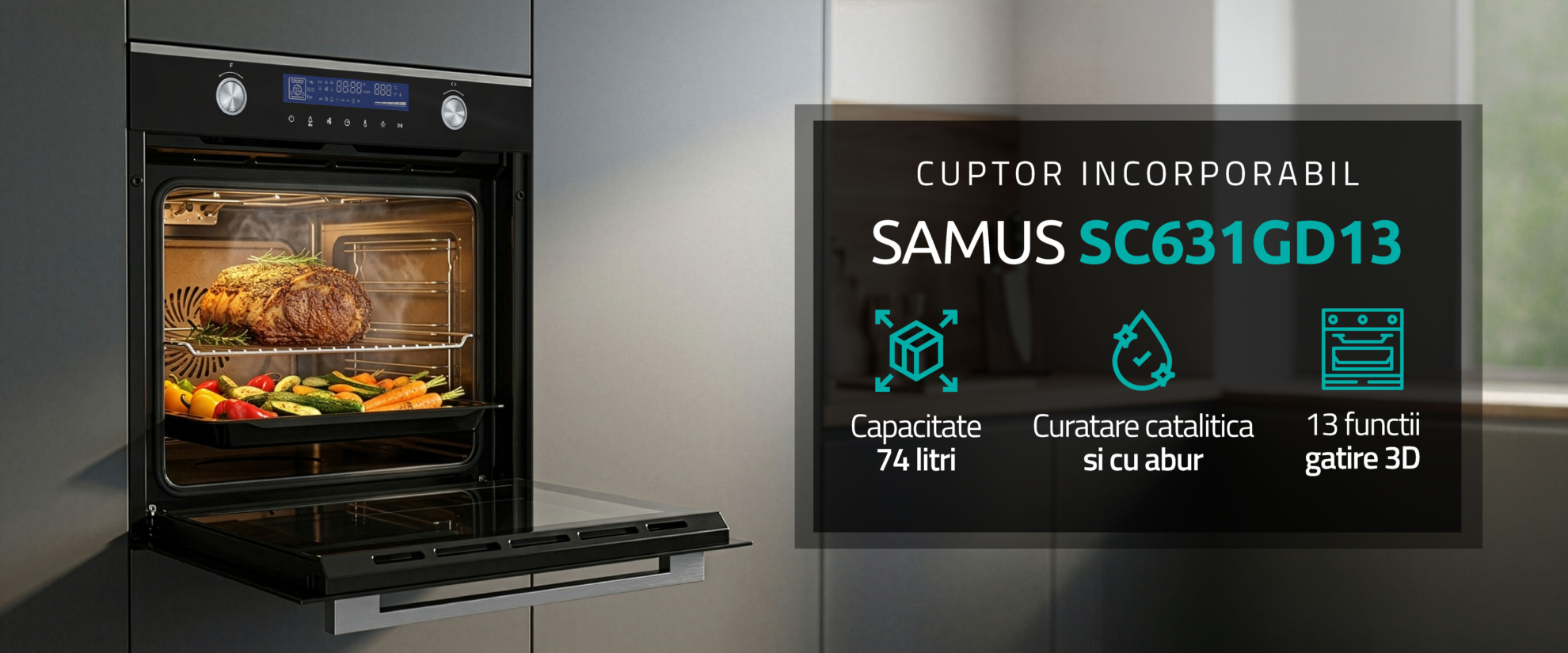 Aduci o nota de eleganta in bucatarie si, in acelasi timp, gasesti ajutorul perfect pentru a prepara cele mai delicioase mese pentru tine si cei dragi cu ajutorul cuptorului incorporabil Samus. Avand un design modern, caracterizat prin note elegante si utilizare intuitiva, acesta este dotat cu cele mai noi si utile tehnologii, capabile sa transforme orice reteta intr-un festin culinar.