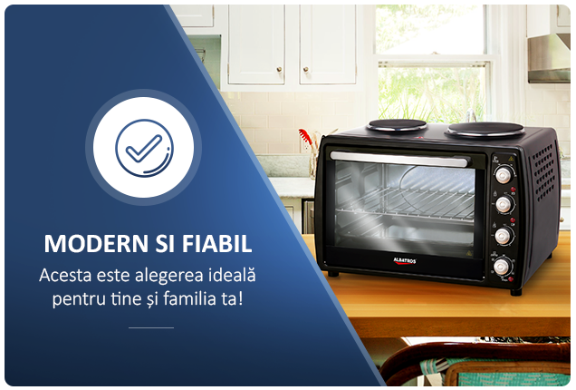 Tava inclusa – pentru cele mai reusite preparate ai nevoie de o tava potrivita in cuptorul tau! Cuptorul Albatros are tava inclusa, asa ca scapi de aceasta grija.