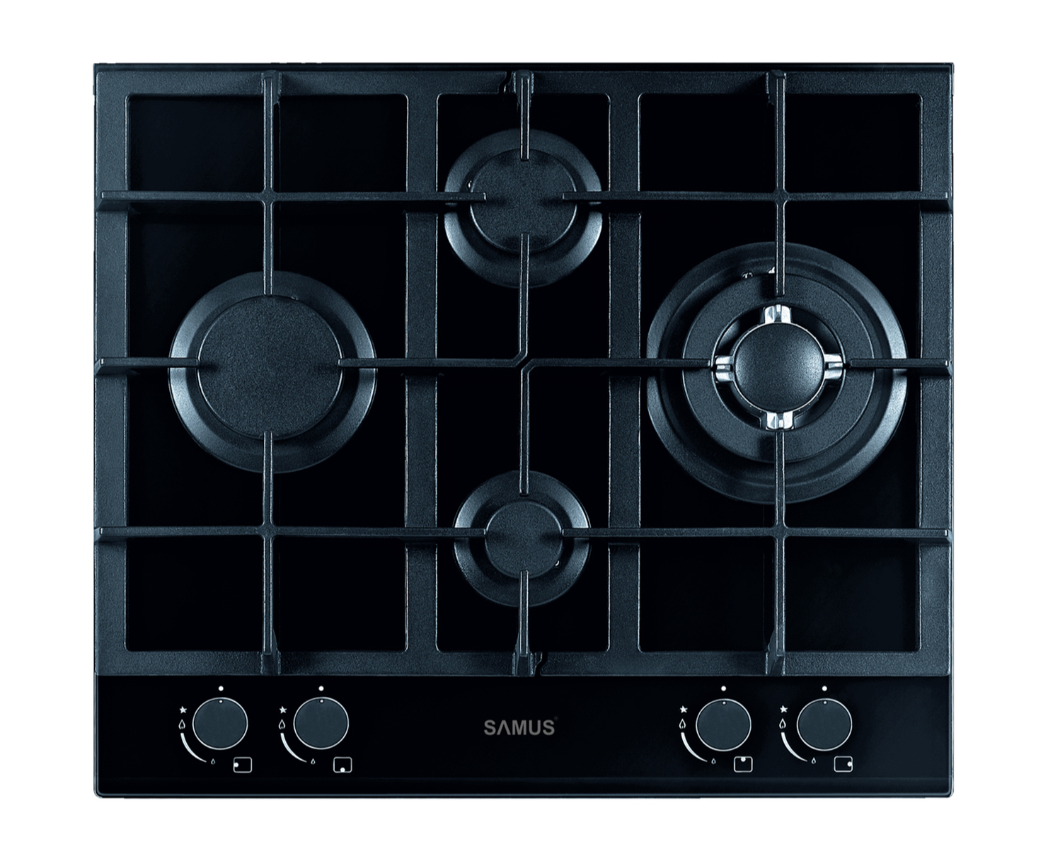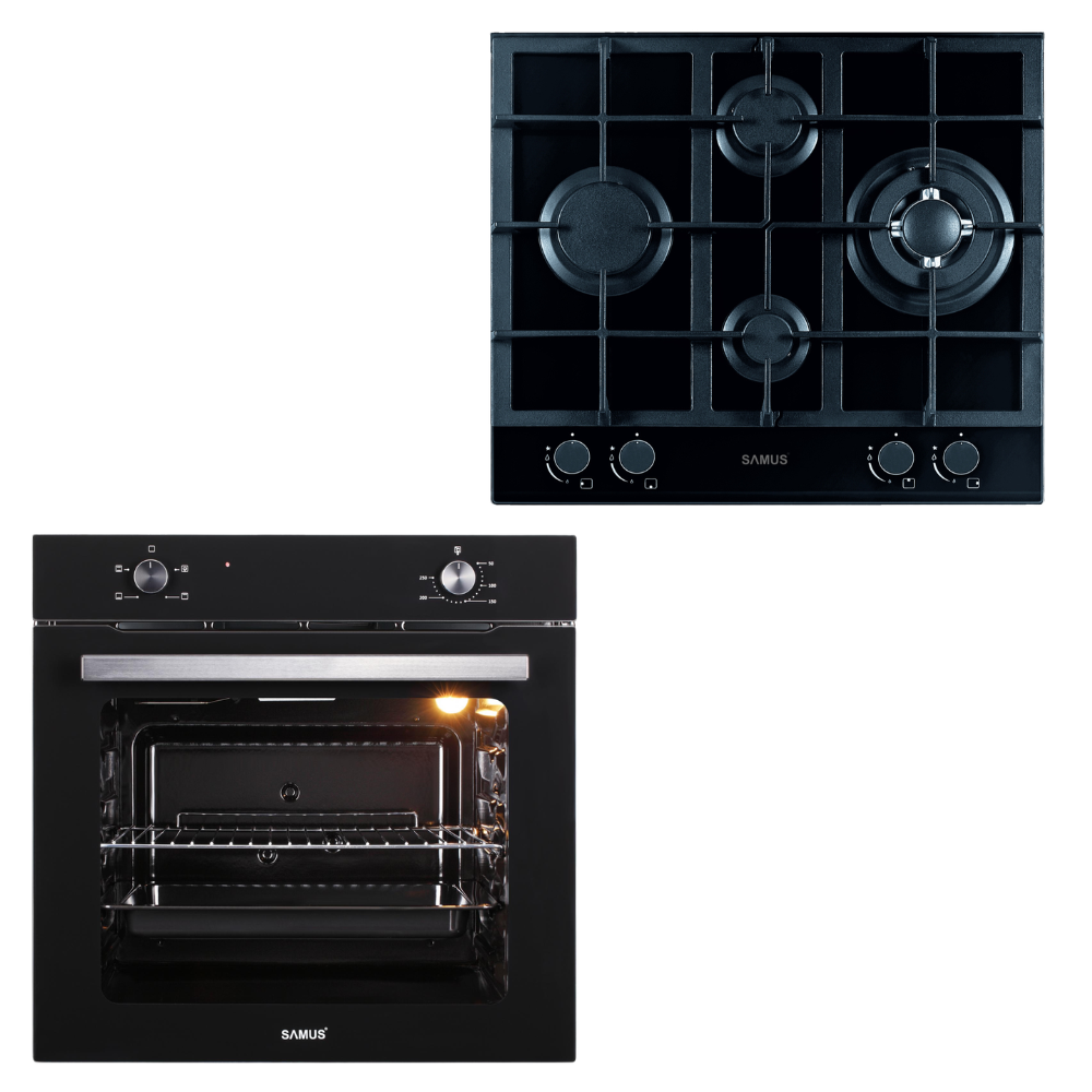 Pachet Bucătărie Samus: Cuptor Incorporabil SC621G4 81L, 4 Funcții, Ventilator, Indicator Gatire + Plita Incorporabila PSG-64SG2 4 Arzătoare Gaz, WOK, Gratare Fonta, Sticla Neagra