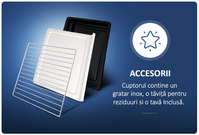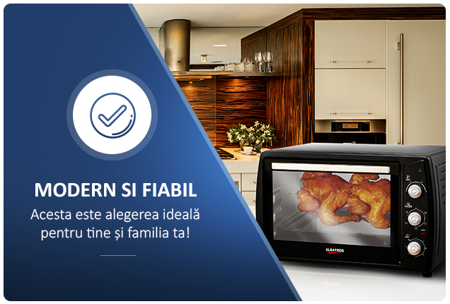 Pentru cele mai reusite preparate ai nevoie de o tava potrivita in cuptorul tau! Cuptorul Albatros are tava inclusa, asa ca scapi de aceasta grija.