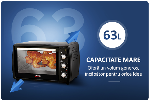 Capacitatea de 63 de litri iti ofera un volum generos, incapator pentru orice idee, pentru a prepara mancaruri delicioase pentru tine si cei dragi. Pune-ti in functiune creativitatea si surprinde-i pe cei dragi!