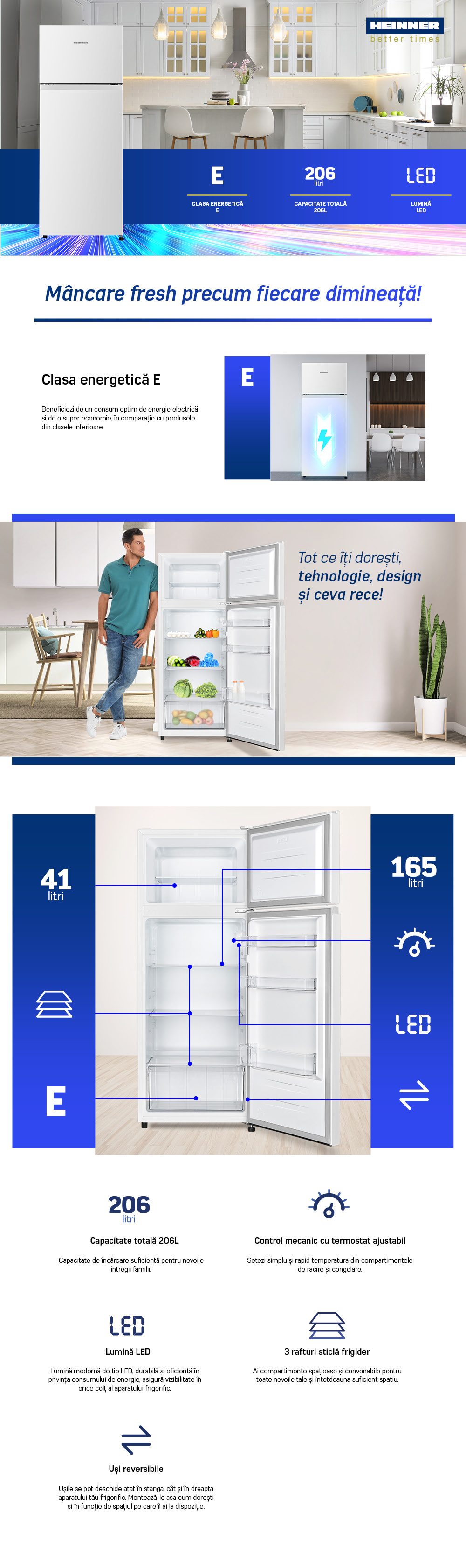 Ladă frigorifică Heinner HCF-HM371CE++, 371L, Control Electronic, Clasă Energetică E, Alb