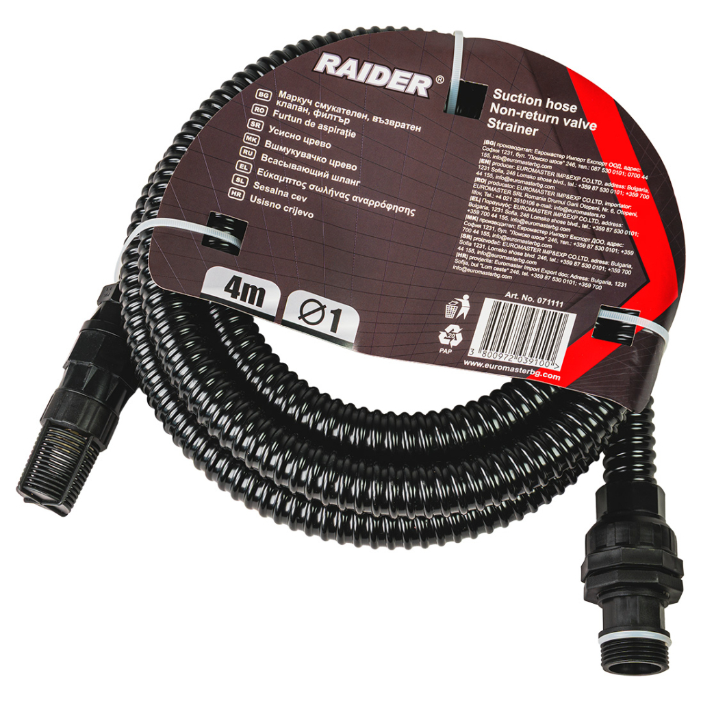 Raider Garden Tools Furtun de aspiratie 1 tol, 4m cu sita si supapa antiretur