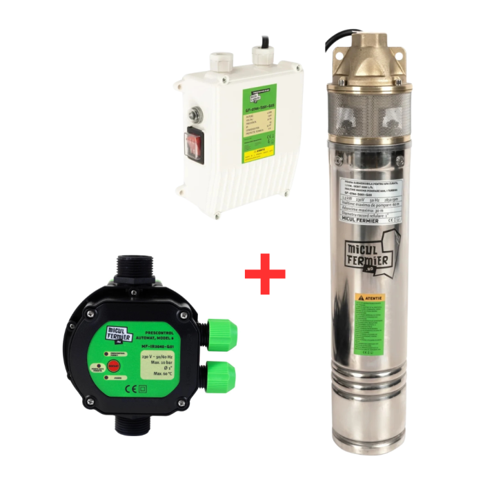 Pachet hidrofor - Pompa submersibila, putere 1.3kW, debit 3000l/h, pompare 60m + Presostat electronic 2.2 kW
