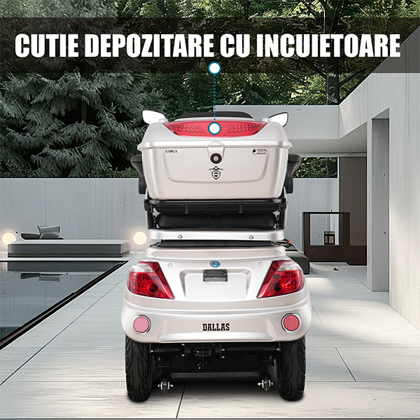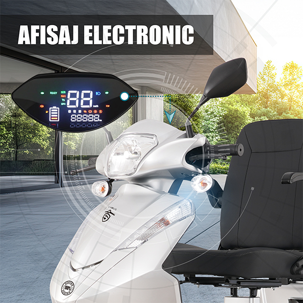 Cu afisajul electronic integrat, triciclul Samus iti ofera informatii esentiale in timp real: viteza, nivelul bateriei, semnalizari si alte functii de baza. Ecranul este clar, intuitiv si usor de citit atat ziua, cat si noaptea, ceea ce iti permite sa monitorizezi rapid starea vehiculului in timpul deplasarii.