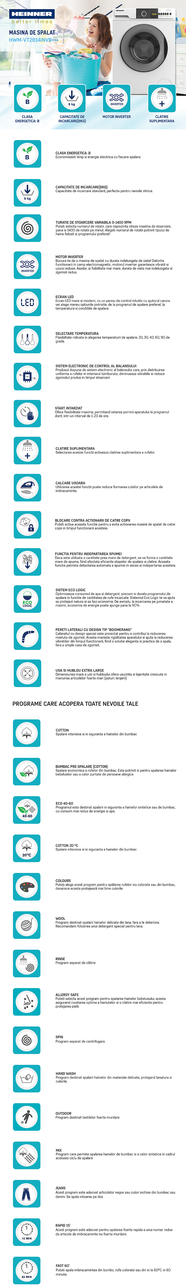 Masina de spalat vase Independenta Heinner HDW-FS6062WE++, 12 Seturi, 6 programe, Clasa E, 60 cm